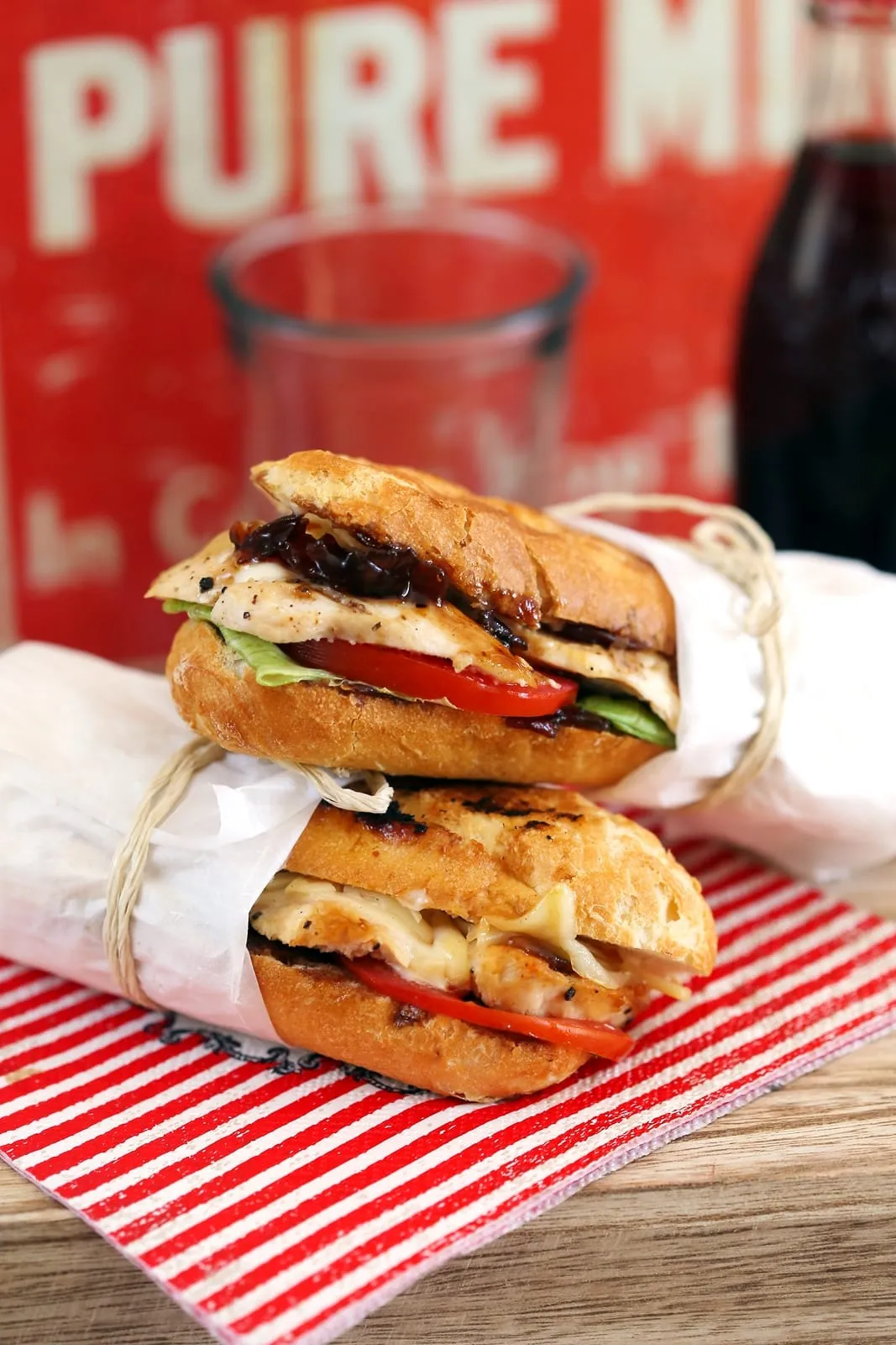 A csirkés-sajtos szendvics egy olyan műfaj, amivel egyszerűen lehetetlen mellélőni: ha a csirke szaftos, a sajt pedig olvad, akkor nagy baj már nem lehet. Ezt az alaphelyzetet még megfejeltük egy kis liliahagyma chutneyval és az eredmény jobb lett, mint amire számítottunk.
