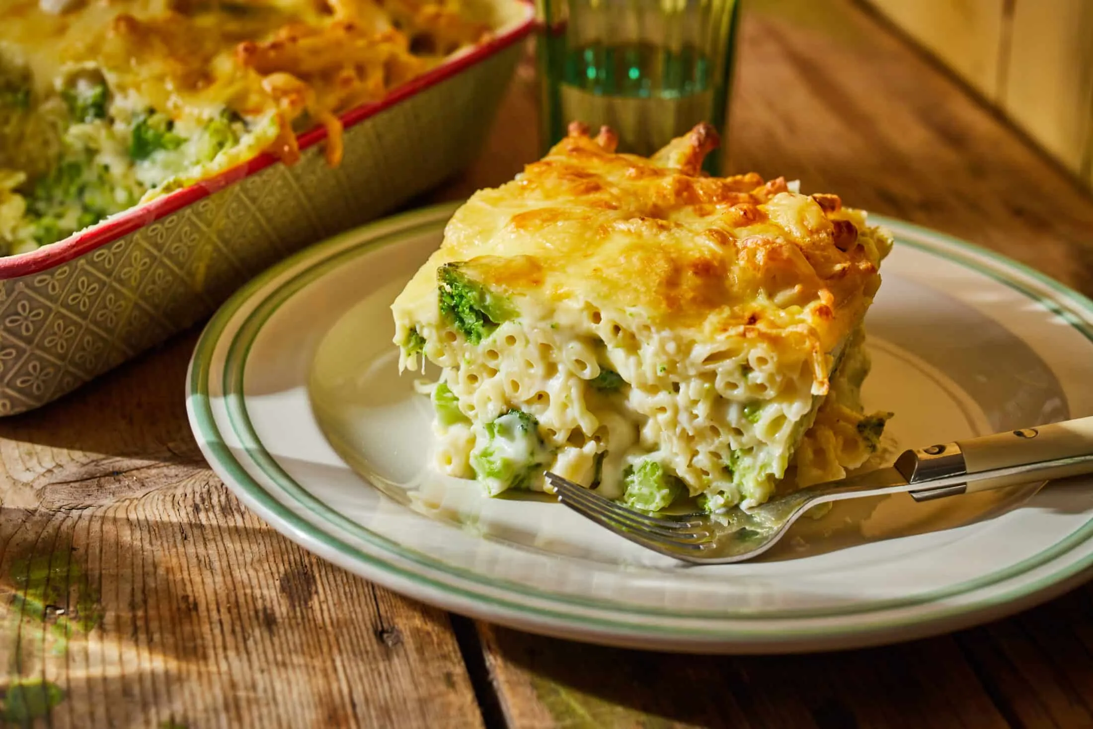 Egy nagy tálban összekeverjük a tésztát a brokkolival, leöntjük a mártással, alaposan összekeverjük, majd egy tepsibe egyengetjük. A tetejét megszórjuk reszelt sajttal, és 200 fokra előmelegített sütőben 20-25 perc alatt összesütjük.