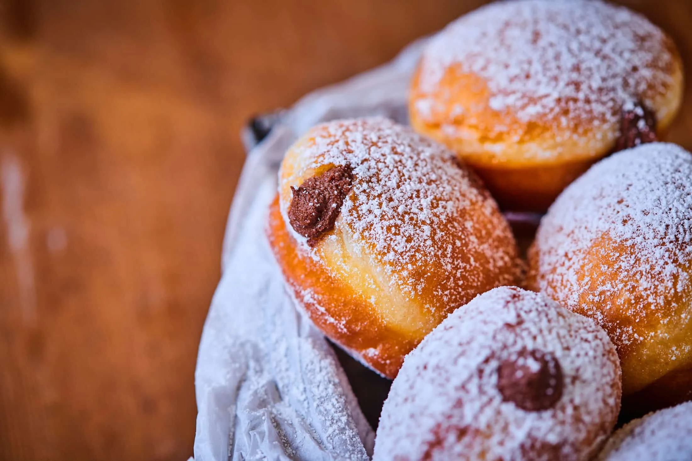 Letakarjuk a fánkokat, és hagyjuk 20 percig pihenni. Ezután forró, 170 fokos olajban, fedővel letakarva 1-2 perc alatt aranybarnára sütjük az egyik oldalukat, majd megfordítjuk, és a másik oldalukkal is így teszünk, de már fedő nélkül.