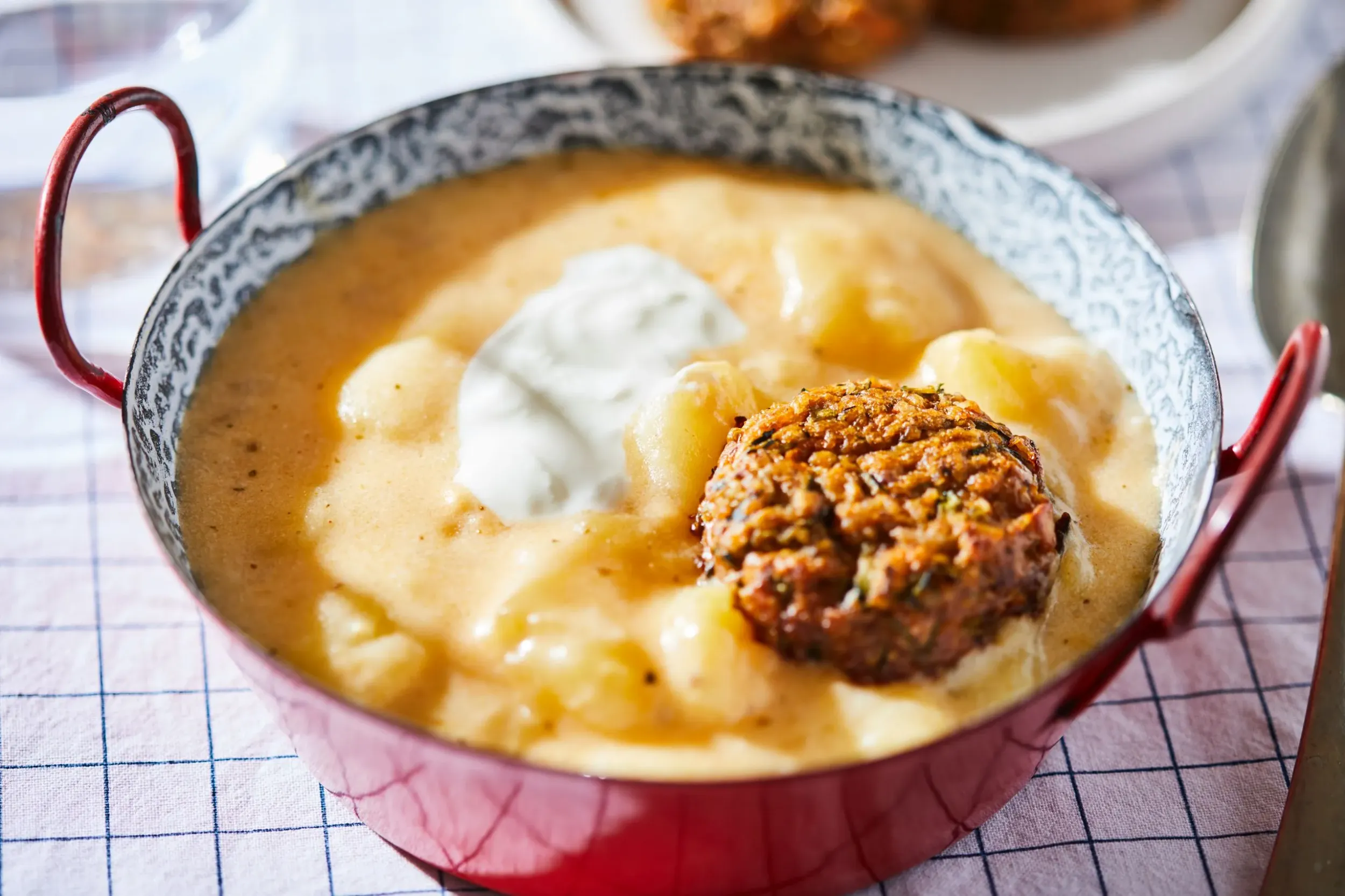 Cukkinifasírtjoghurtoskrumplifőzelékkel