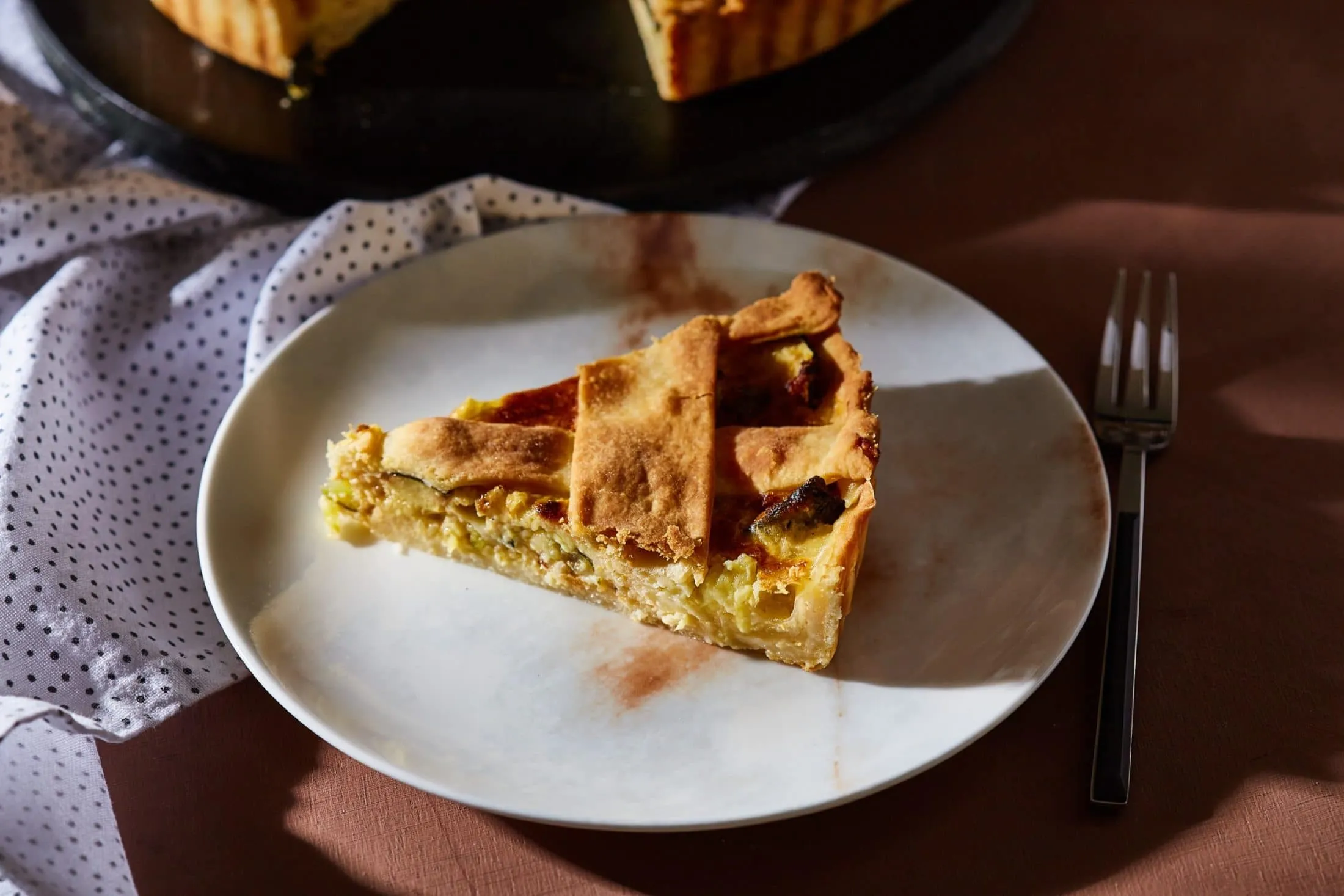 Kivesszük a tésztát, beletöltjük a cukkinis keveréket, és rárakjuk a tésztacsíkokat is, amiknek a széleit lenyomkodjuk, 3-3-at egymásra merőlegesen. Ezután 180 fokon megsütjük, kb. 35-40 perc alatt, és kész is.