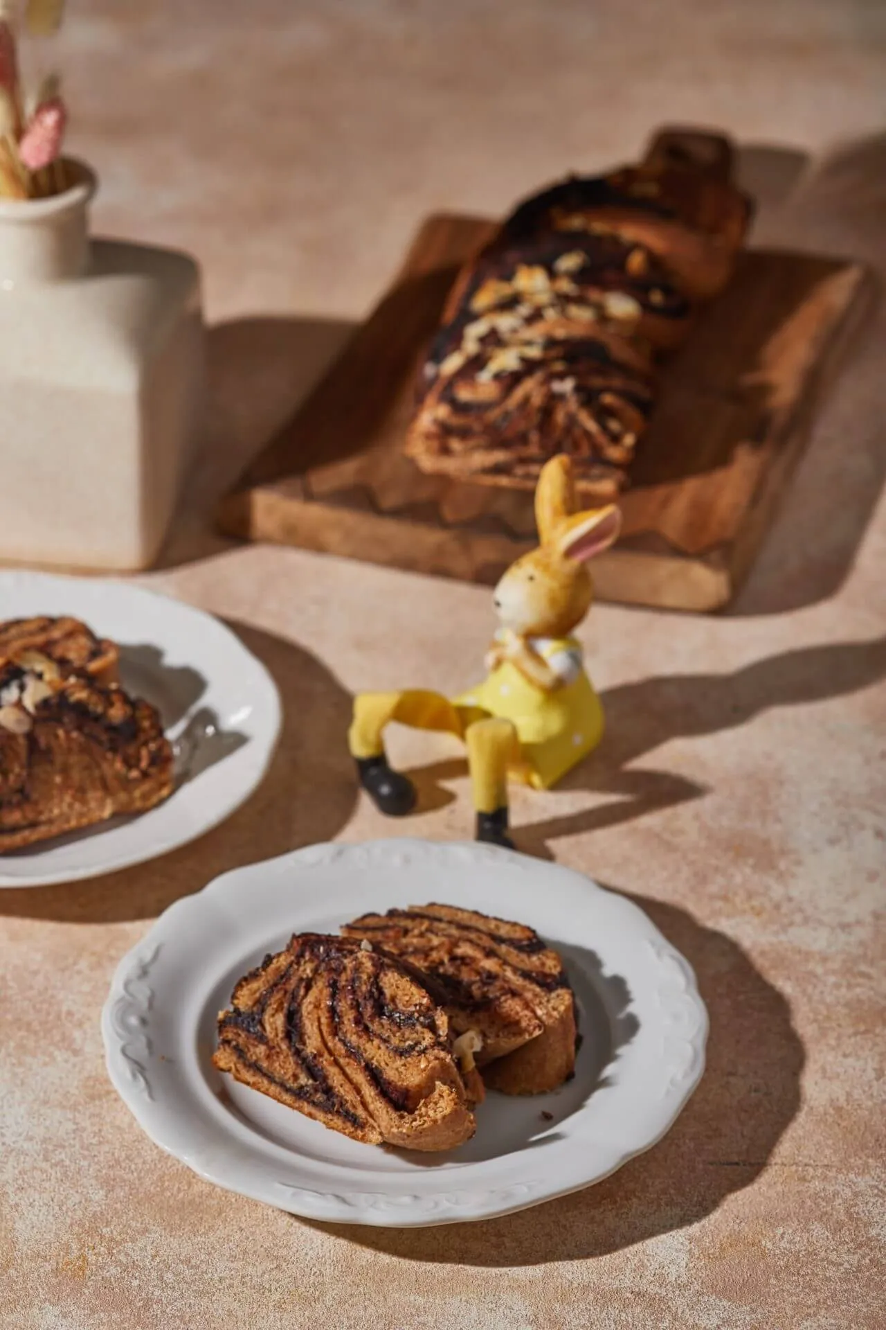 A liszteket, a sót és a xilitet elkeverjük egy tálban, a tejbe pedig belekeverjük az élesztőt. A tejes keveréket a lisztes keverékhez adjuk, és nagyjából összekeverjük, majd hozzáadjuk a tojást és a vajat. 7-8 perc alatt alaposan kidagasztjuk a tésztát, és lefedve egy órát hagyjuk kelni. Mivel ez egy nehezebb, sűrűbb tészta, nem fog a duplájára kelni.