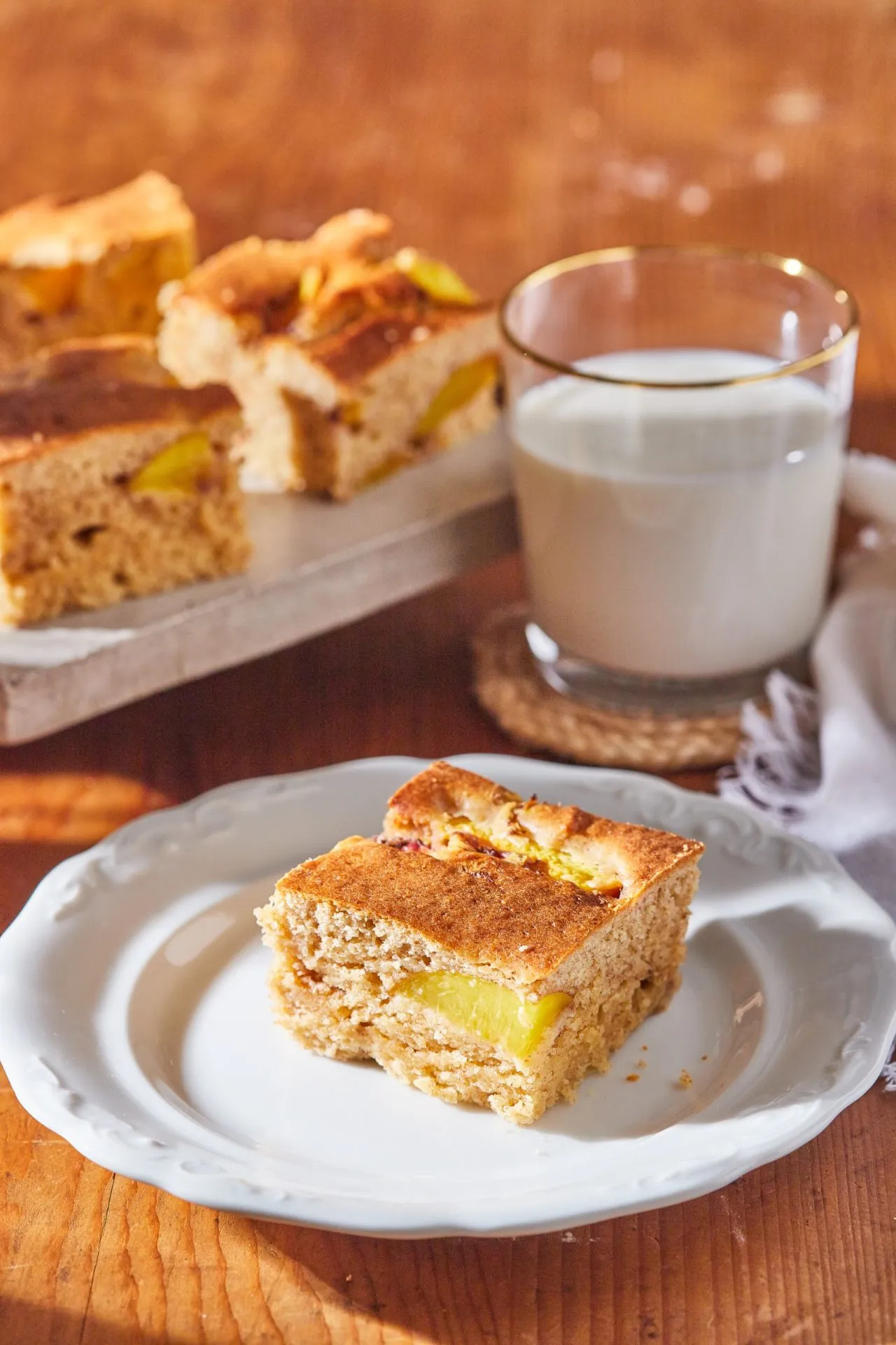 A liszteket, a sütőport és a sót összekeverjük, majd kiveszünk belőle egy evőkanállal, amit összekeverünk a fahéjjal. A barackot cikkekre vágjuk, és összeforgatjuk a fahéjas-lisztes keverékkel. A tojást, az olajat, az édesítőt, a vajat, a vaníliát és a joghurtot is összekeverjük, majd beleforgatjuk a lisztes keveréket, végül a lisztezett barackot is. Kicsit sűrű masszát kell kapnunk, amibe picit nehezebb belekeverni a barackot. A tepsit sütőpapírral kibéleljük, beleöntjük a masszát, és 180 fokra előmelegített sütőben 40-45 perc alatt megsütjük.