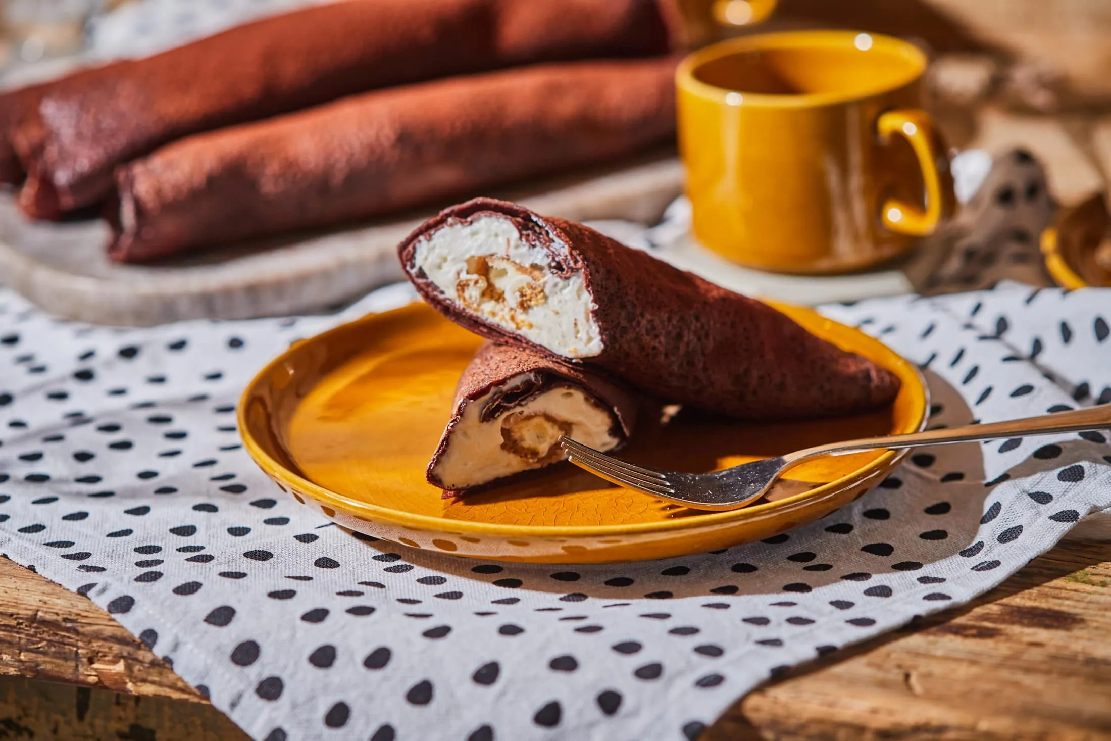 Jöhet az összeállítás: egy palacsinta közepére kenünk a krémből. 2 babapiskótát számolunk 1 palacsintához, mindkettőt belemártjuk a kávéba, az egyiket középre rakjuk a krémre, a másikat eltörjük, és a két végéhez rakjuk. Feltekerjük a palacsintát, és ugyanígy megcsináljuk a többit is. Ha van időnk, hagyjuk állni legalább fél órát, de ha nem tudtok várni, egyből fogyasztható.