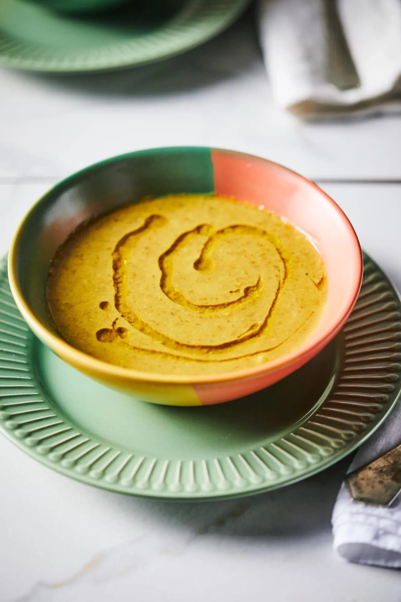 2 konzerv lencsét leszűrünk és átmosunk. A hagymát és a fokhagymát felaprítjuk, megfonnyasztjuk az olívaolajon, megszórjuk a curryporral, és pirítjuk még 2-3 percig. Sózzuk, borsozzuk, rádobjuk a leveskockát, majd az átmosott 2 konzerv lencsét, felöntjük 1 l vízzel, majd ha felforrt, az egészet turmixgépben pürésítjük.