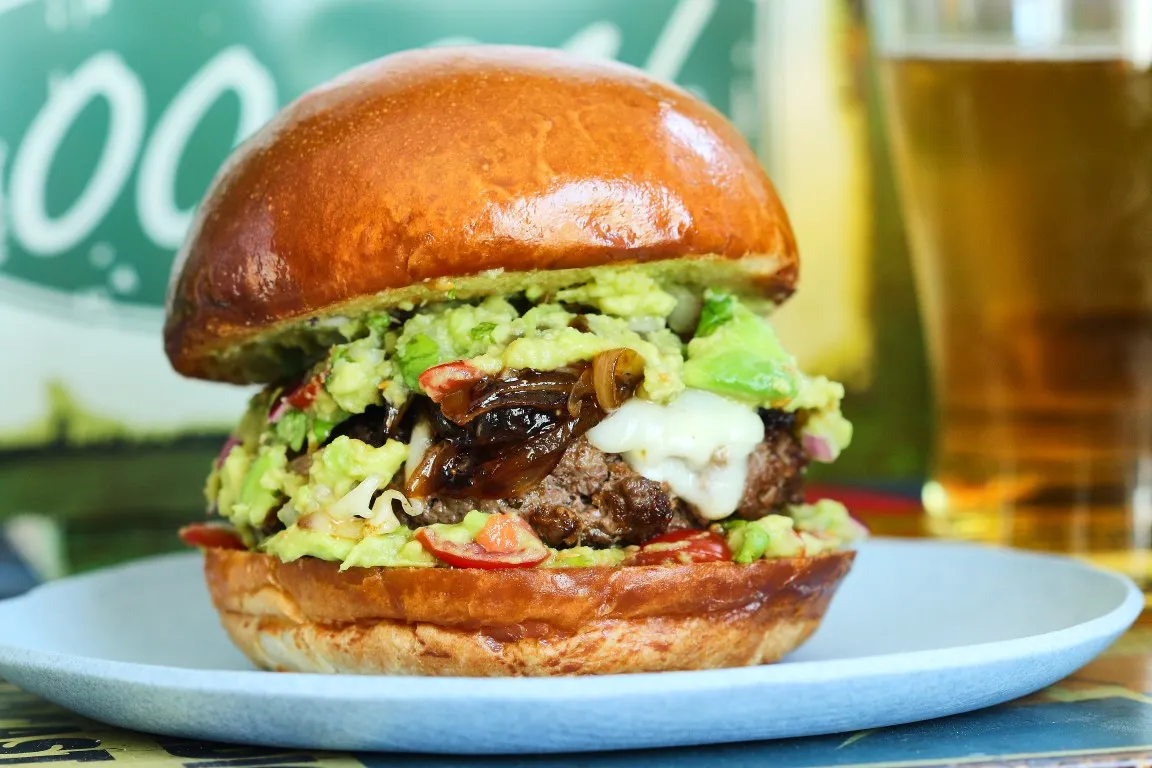 Egy lepirított burger buci aljára kenjük az avokádókrémet, majd erre dobjuk a húst. Ráhalmozzuk a hagymát, majd a szintén avokádóval megkent bucitetővel zárjuk az etűdöt.