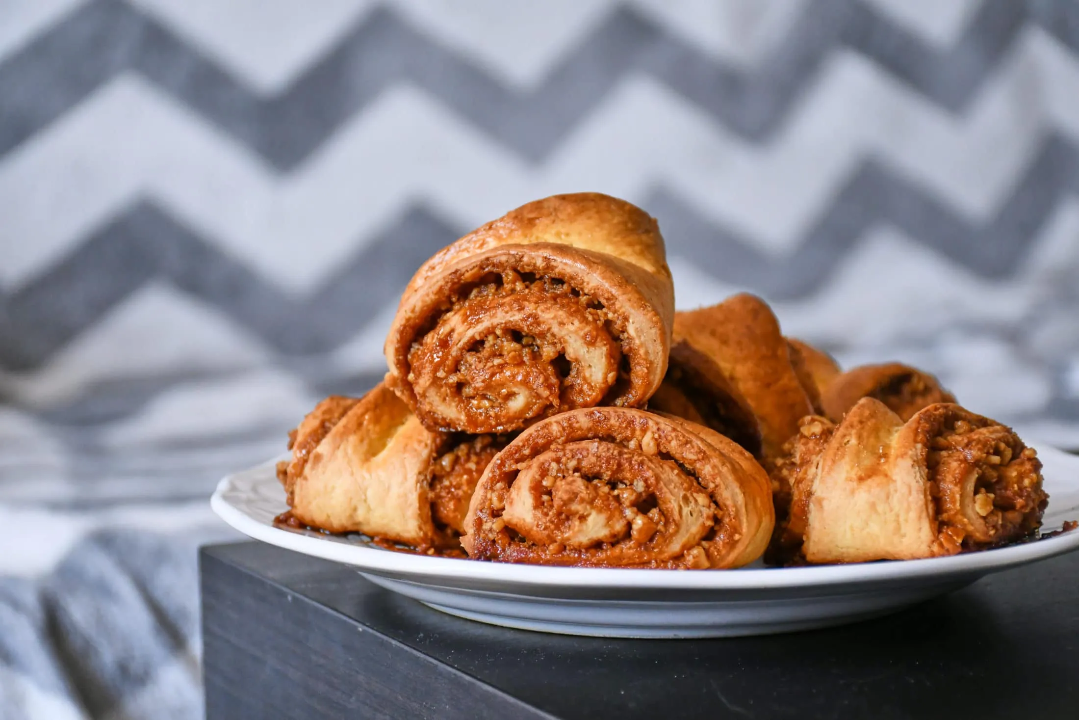 A tésztához a tejet meglangyosítjuk, beleszórjuk az élesztőt és egy kanál cukrot, elkeverjük, és hagyjuk pár percet pihenni. A maradék cukrot összekeverjük a sóval, a liszttel és a tojássárgákkal, majd mehet bele a felfuttatott élesztős tej. Elkezdjük összedolgozni a tésztát, majd hozzáadjuk a puha vajat, és jól bedagasztjuk. Letakarva 40-50 percig kelesztjük.