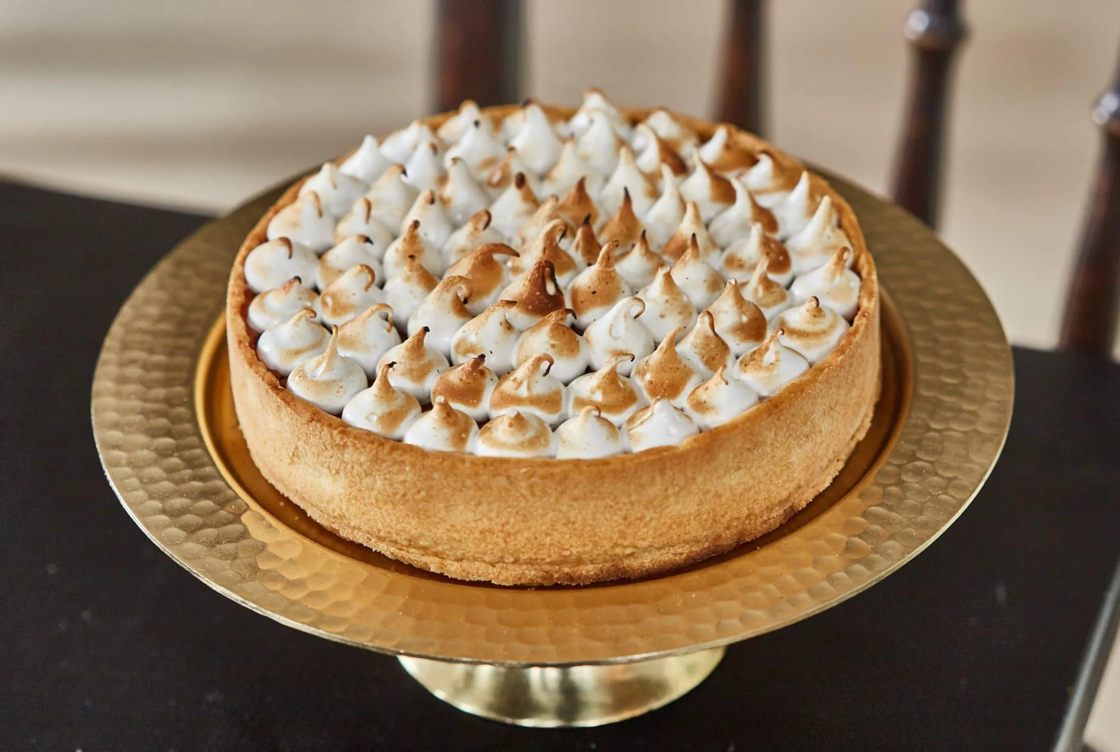 A tésztához a vajat elmorzsoljuk a liszttel, majd hozzágyúrjuk a többi hozzávalót, fóliába csomagoljuk a tésztát, és 30 percre hűtőbe dobjuk.  A sütőtököt megpucoljuk, kiszedjük a magjait, angyobb darabokra vágjuk és 190 fokos kb. 40 perc alatt puhára sütjük. A sütőtököt turmixgépben lepürésítjük, majd hozzákeverjük a többi hozzávalót, a durvára vágott dióval együtt. A tésztából kinyújtunk egy akkora korongot, mint a forma alja, és ezt bele is rakjuk a formába. A többi tésztából kb. 3,5 cm széles sávot vágunk, amit a forma oldalához illesztünk úgy, hogy érintkezzen a tészta aljával. Ujjal kicsit összenyomkodjuk a széleket, majd 180 fokos sütőben 10-12 perc alatt elősütjük a tésztát. Ezután mehet bele a töltelék, és visszatoljuk a 180 fokos sütőbe kb. 30 percre, hogy megsüljön a töltelék. Mikor kész, kivesszük a sütőből és hűtőhidegre hűtjük. A habhoz a tojásokat habcsók állagú, stabil habbá verjük a cukorral, majd habzsákba téve kidíszítjük vele a torta tetejét. Ha szeretnénk, szakácsfáklyával karamellizáljuk a habcsókokat.
