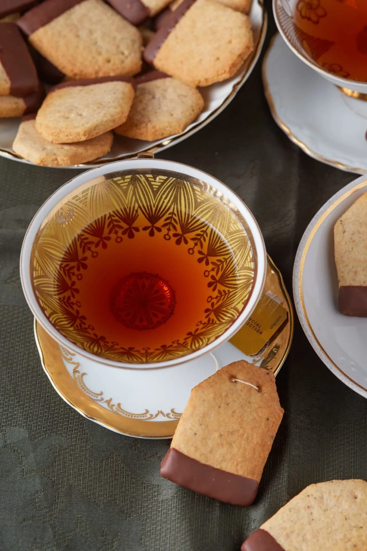 A csoki kivételével minden hozzávalót egy üstbe mérünk, és összegyúrjuk a tésztát. Fóliába csomagoljuk, és 1 órára hűtőbe rakjuk. A pihentetés után, lisztezett deszkán kb. 3 mm vastagságúra nyújtjuk, majd 5 cm-es sávokat vágunk belőle, a tészta hosszabbik oldala mentén. 3,5-4 cm-enként keresztben is bevagdossuk a sávokat, így kis téglalapokat kapunk. Az egyik rövidebbik oldalának a két végét, kissé átlósan levágjuk, hogy mindegyik téglalap úgy nézzen ki, mint egy teafilter. Praktikus, ha több lapot rakunk egymásra, és úgy vágjuk le a sarkaikat. A lapocskák tetejére 2-2 kis lyukat fúrunk fogpiszkálóval.