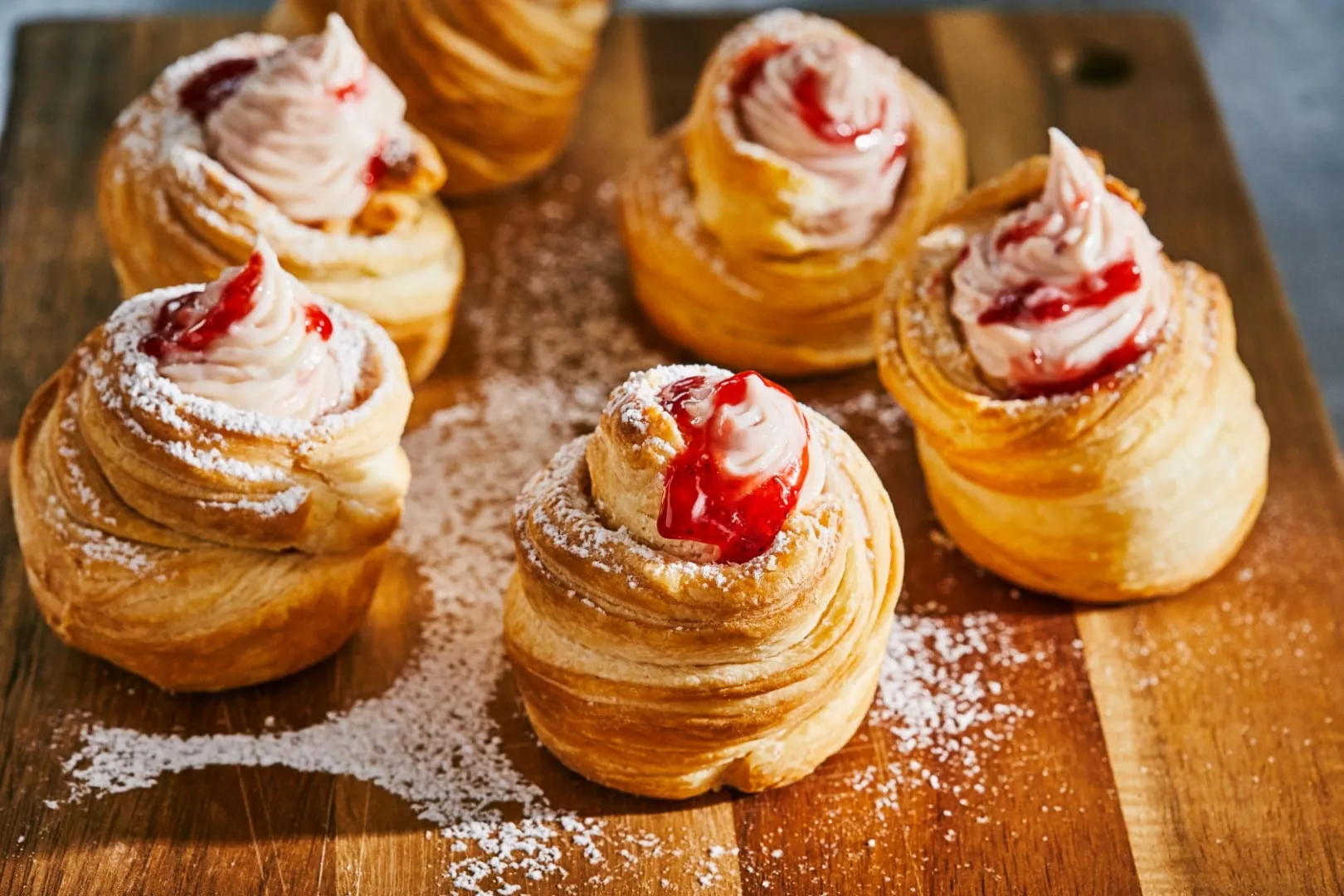 A muffin és a croissant keresztezése ez a fantasztikus süti, a cruffin. Készülök az eredeti recepttel is, de elsőre itt egy megúszós változat, amit sokkal egyszerűbb elkészíteni, hiszen csak két csomag leveles tésztát kell hozzá vennetek. Krémnek most egy szintén pikk-pakk összedobható epres sajtkrém került bele.