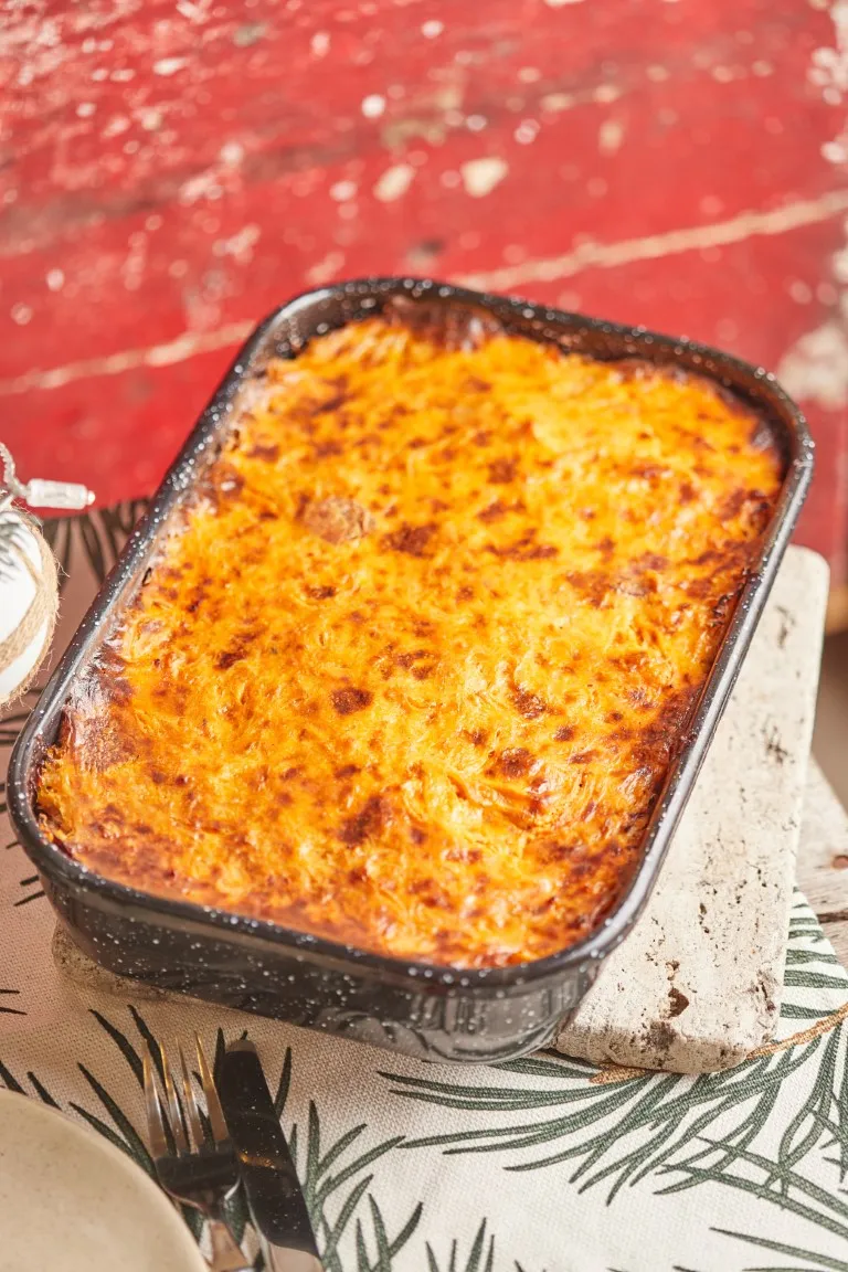 A tetejét megkenjük a liszt, tejföl, pirospaprika és kevés só keverékével. 180 fokra előmelegített sütőben 30-40 percig sütjük, attól függően, hogy mennyire szeretnénk pirultra a tetejét.