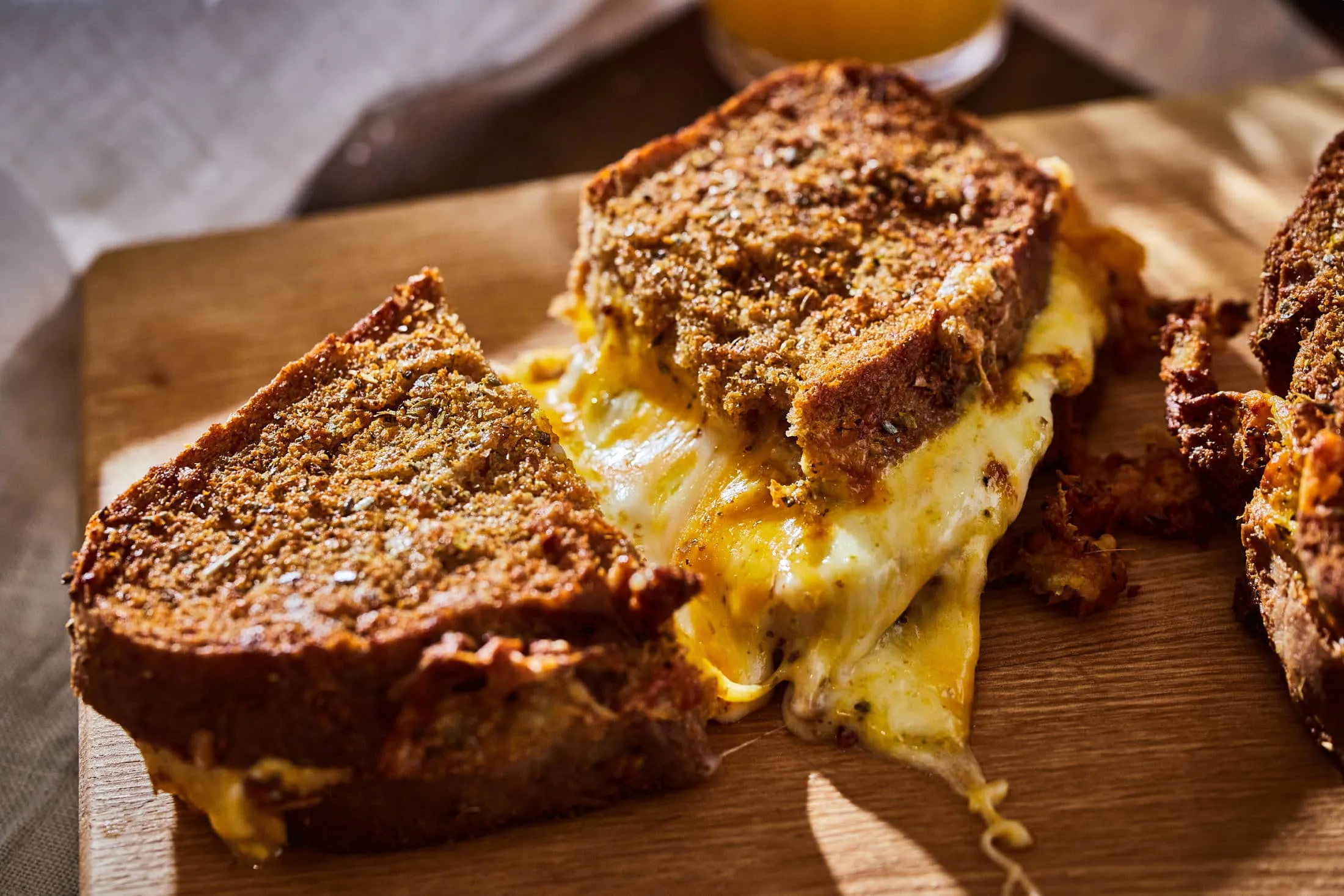 Az extra sajtos szendvics elkészítéséhez a vajat 900 W-on, 30 másodperc alatt megolvasztjuk mikróban, majd belerakjuk a fűszereket, és alaposan elkeverjük. A kenyerek külső felét bekenjük a fűszeres olvasztott vajjal, majd a szendó alját az air fryerbe helyezzük, a sajtmennyiség felét rárakjuk és a másik kenyeret is rátesszük, majd ezt megismételjük a másik két szelettel is.