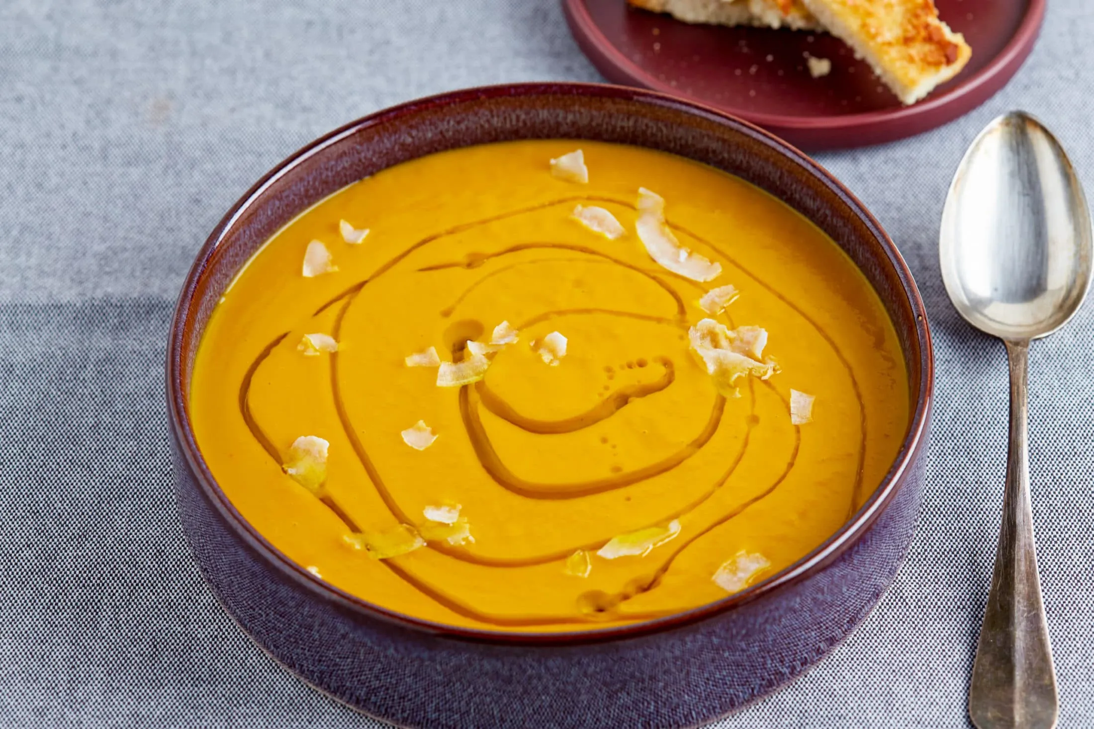 Az édesburgonyát meghámozzuk, feldaraboljuk, majd a fahéjjal, a fokhagymával és a chipotléval átpirítjuk az olívaolajon, majd felöntjük az alaplével, sózzuk, borsozzuk, és puhulásig főzzük. Amikor puhára főtt az édesburgonya, kivesszük a fahéjat, hozzáöntjük a fehérborecetet, leturmixoljuk, majd egy sűrű szövésű szűrőn átpasszírozzuk.