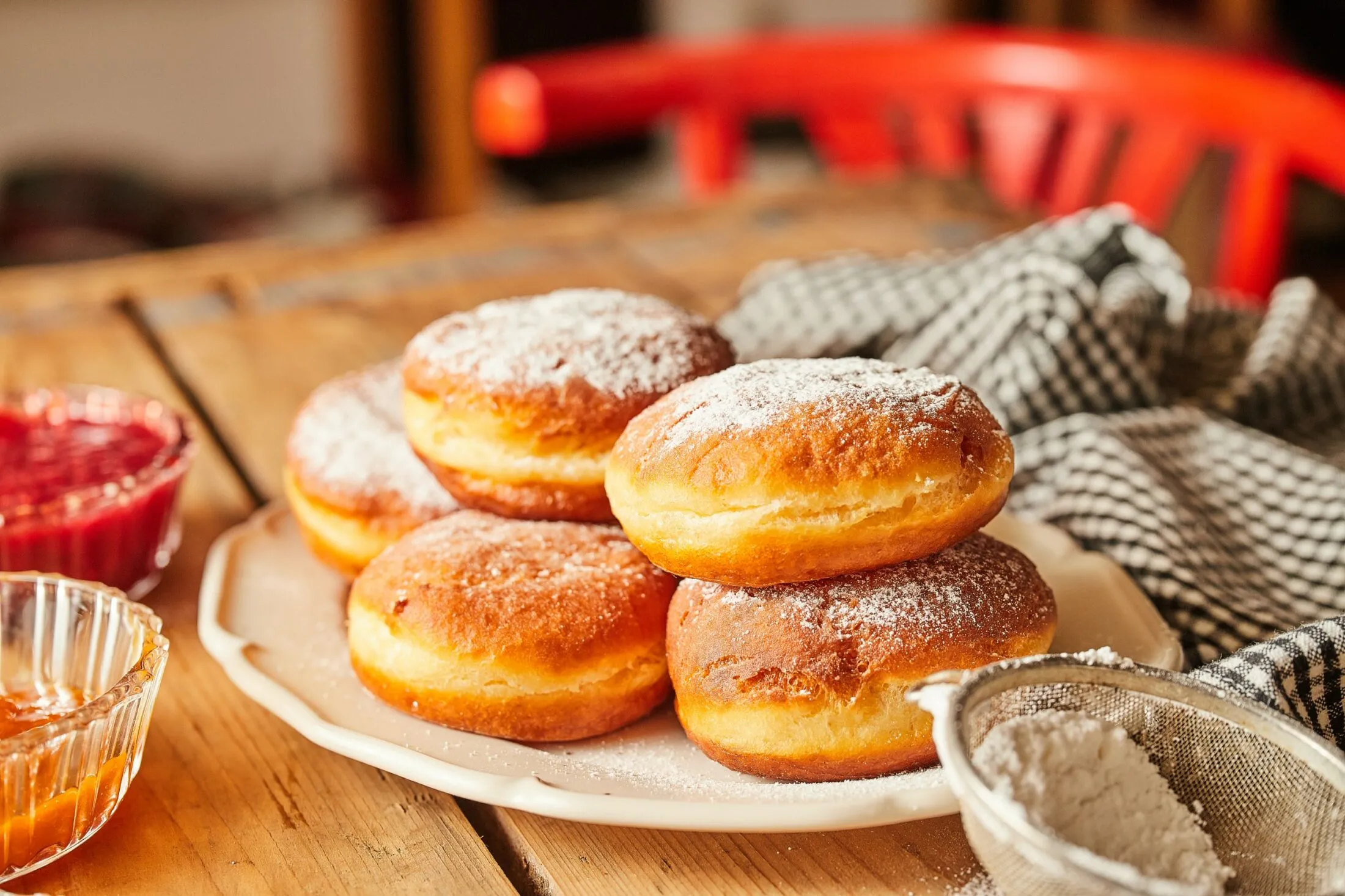Ezután 160-170 fokra melegített olajban, fedővel letakarva 1-2 perc alatt aranybarnára sütjük az egyik oldalukat, majd megfordítjuk és a másik oldalukkal is így teszünk, de már fedő nélkül. A megsült fánkokat papírtörlőre szedjük, és porcukorral megszórva, a lekvárral együtt tálaljuk.