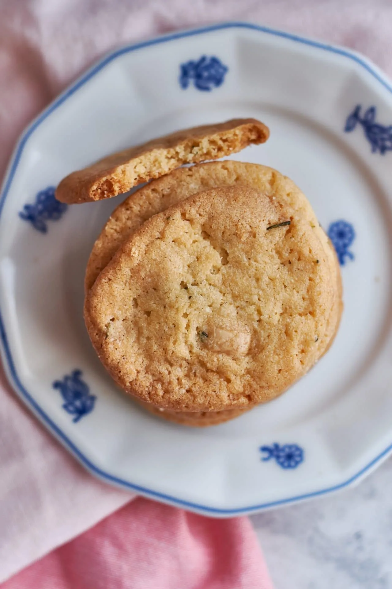 A vajat a cukorral és a vaníliás cukorral habosra keverjük, majd mehetnek bele a tojások, és újabb keverés következik. A csokit kisebb kockákra, a rozmaringleveleket apróra vágjuk, majd összekeverjük először a liszttel, a keményítővel, a sütőporral és a sóval, aztán ez az egész mehet a vajas részhez. Összekeverjük a tésztát, letakarjuk egy fóliával, és hűtőbe rakjuk 2 órára. A pihentetés után kisebb, diónyi méretű golyókat formázunk a tésztából, kissé ellapítjuk, majd 170 fokra előmelegített sütőben, alsó-felső sütésen, 15-18 percig sütjük.