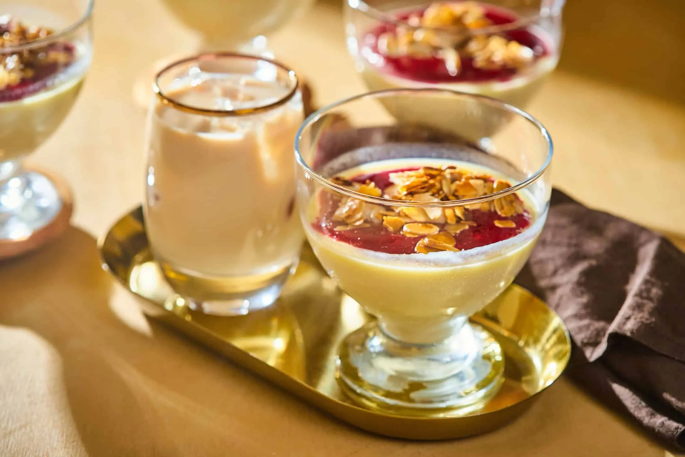 A fehércsokis málnás panna cottához a zselatinlapokat vízbe áztatjuk és hagyjuk állni. Közben felmelegítjük a tejszínt a tejjel és a vaníliával, majd belekeverjük a fehér csokit. Hozzáadjuk a kinyomkodott zselatinlapot és a krémlikőrt, és alaposan elkeverjük. A keveréket tálalópoharakba öntjük, hagyjuk kihűlni, majd hűtőbe tesszük legalább 2-3 órára.