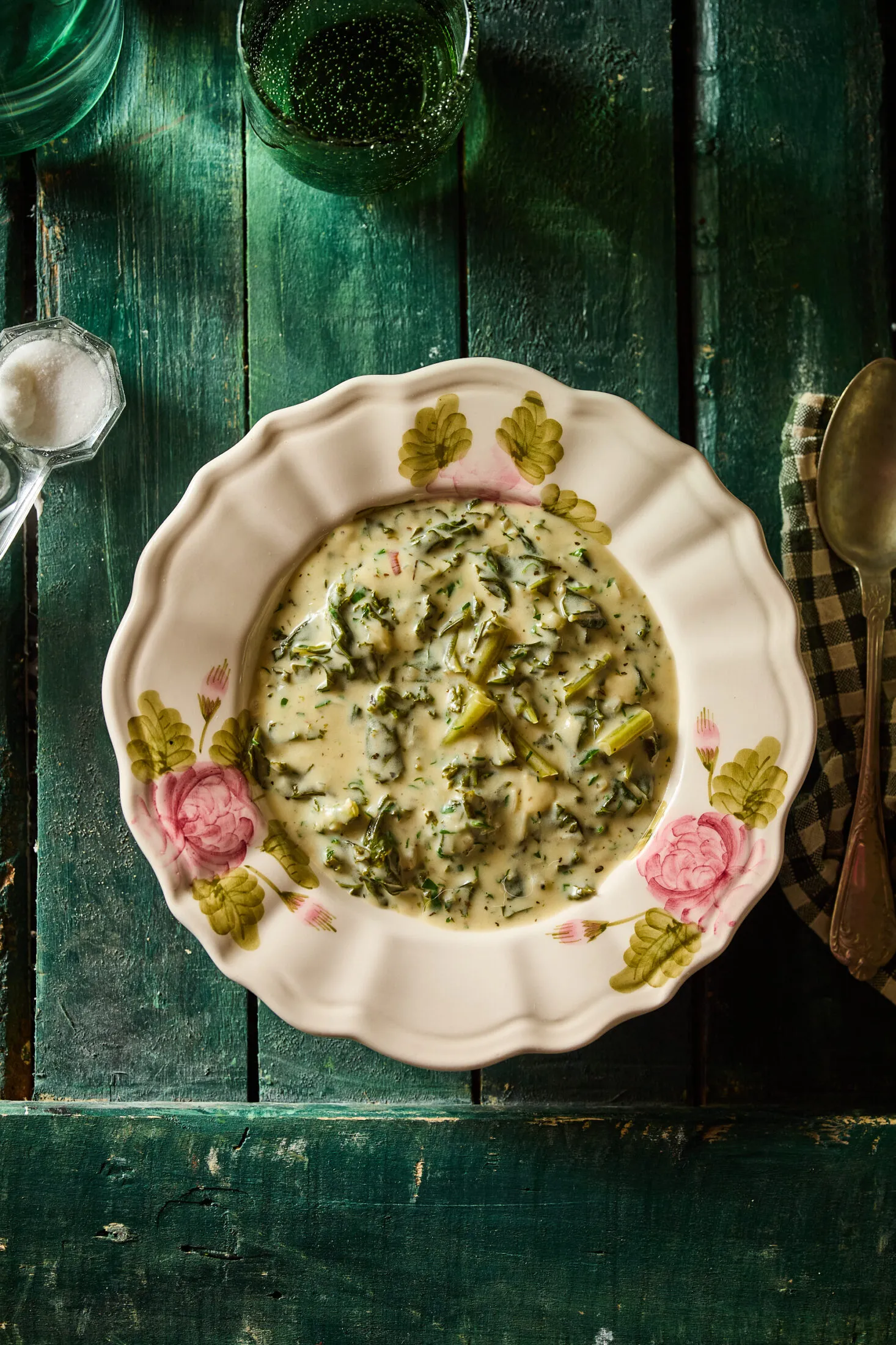 Míg felforr, addig összevágjuk a megmosott fodros kelt 2-3 cm-es darabokra és az alapba tesszük. Addig főzzük, míg besűrűsödik a főzelék és már nem érezzük a lisztes ízt, ez kb. 10 perc. Közben ne felejtsük el kevergetni, nehogy leégjen! A fodroskel-főzelék tálalása előtt finomra vágott petrezselymet keverünk bele.