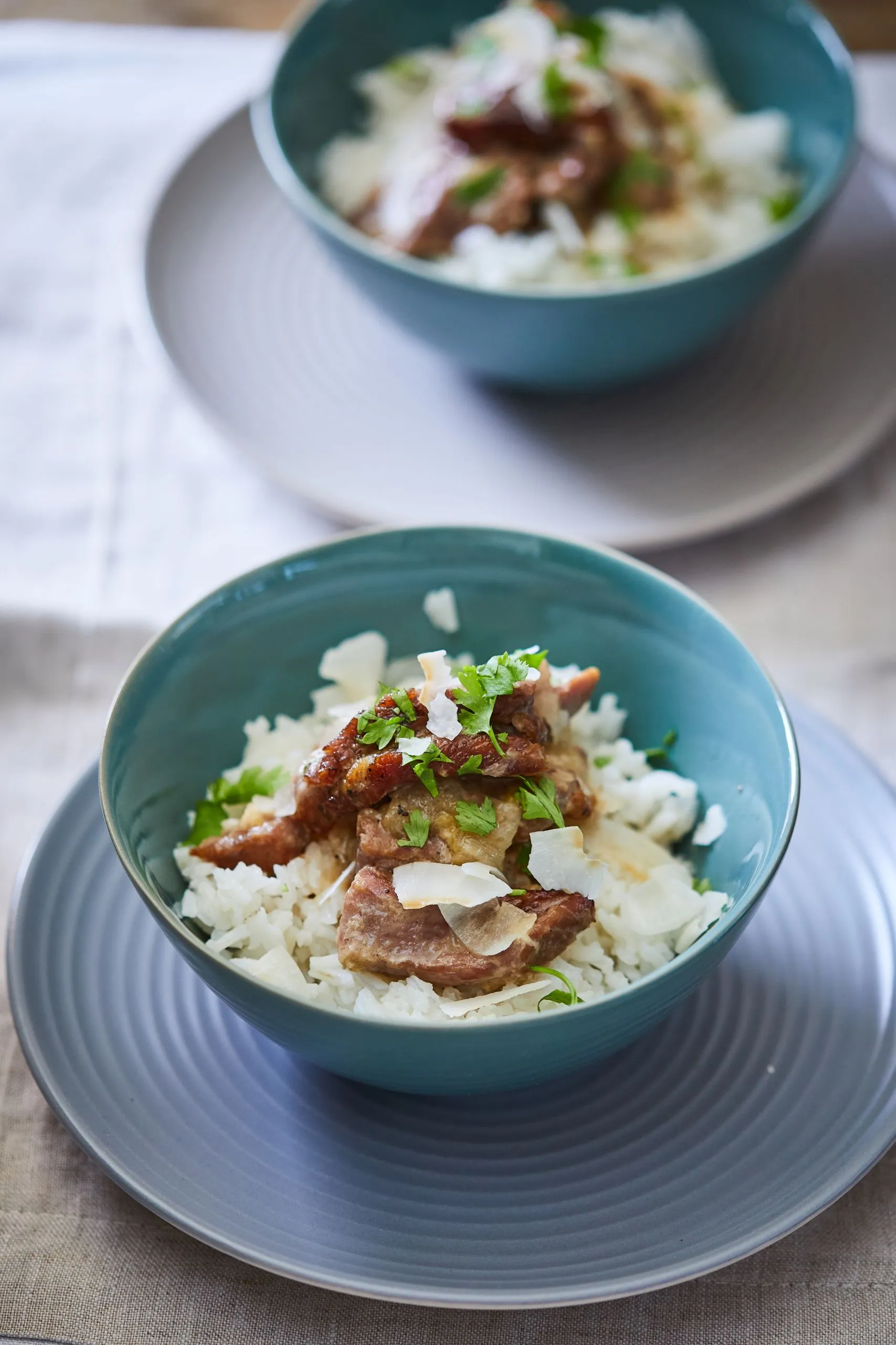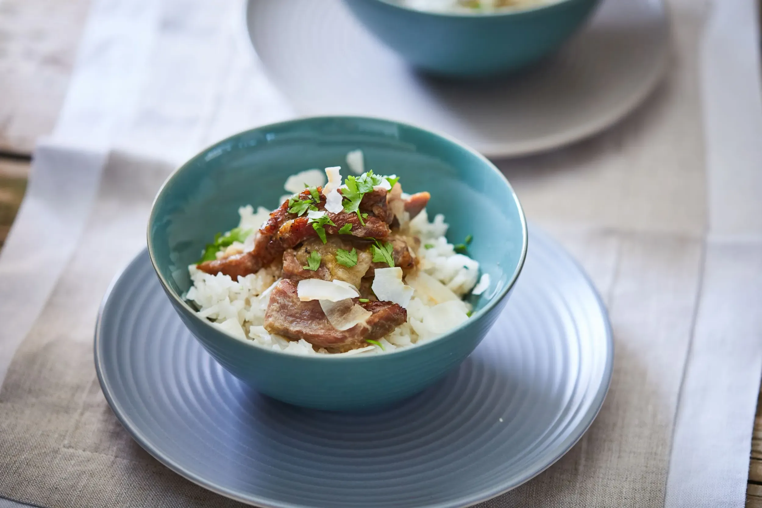 Sok ember csak akkor szereti a sertéshúst, amikor az olyan omlósra sül, hogy szinte elolvad a szájban. Bevallom, én is ezt az oldalt erősítem, pláne mert itt a szaft gazdagodik egy kis kókusztejszínnel, amitől igazán lágy mártást kapunk.