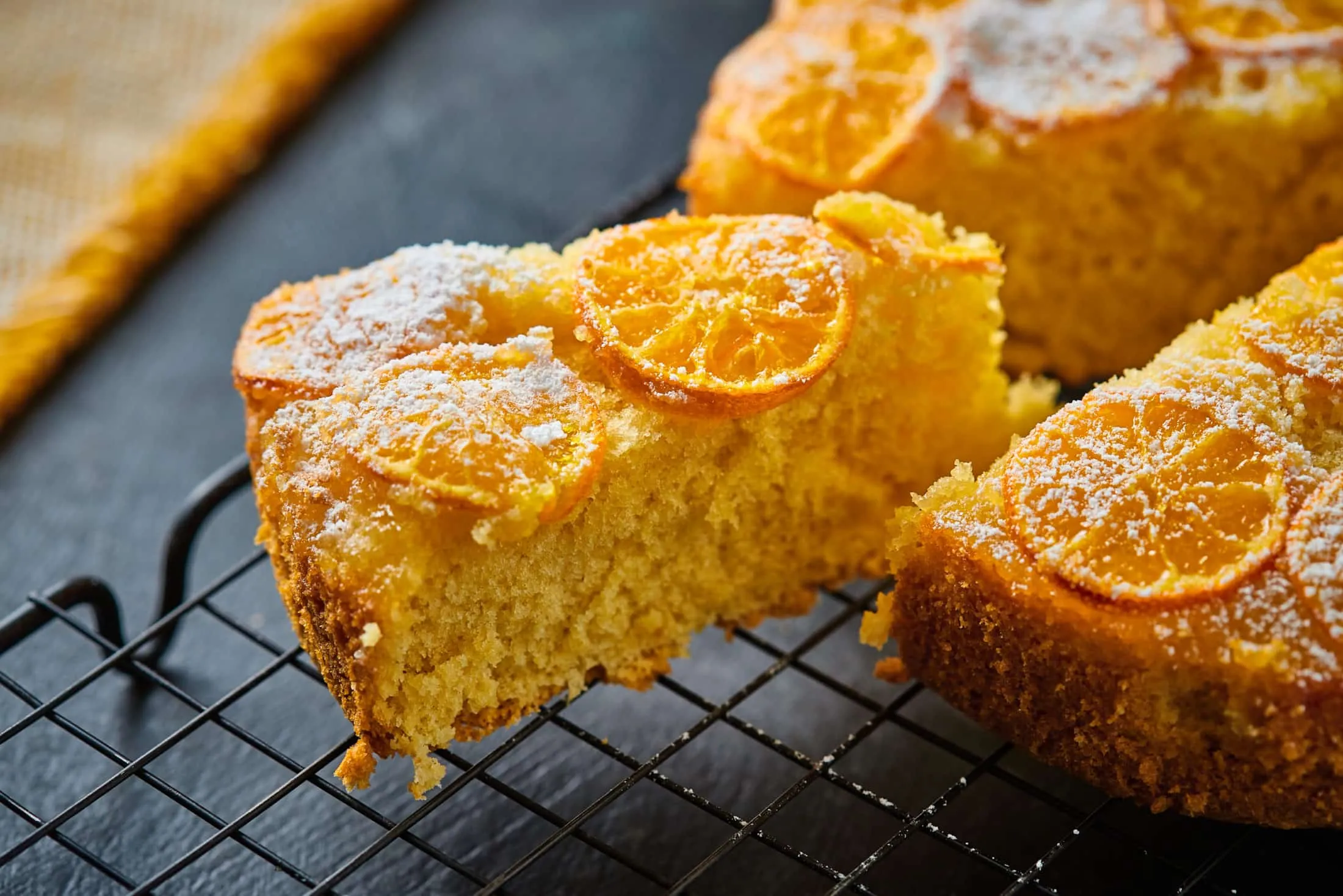 A tésztát simára keverjük, majd a mandarinok tetejére simítjuk, és 180 fokra előmelegített sütőben készre sütjük kb. 30 perc alatt. Tűpróbával ellenőrizzük, megsült-e a süti, és ha nem ragad rá tészta, kivesszük a sütőből. Megvárjuk, amíg legalább langyosra hűl, ekkor lekapcsoljuk a tortaformát és megfordítjuk a sütinket, majd szeletelve, porcukorral megszórva tálaljuk.