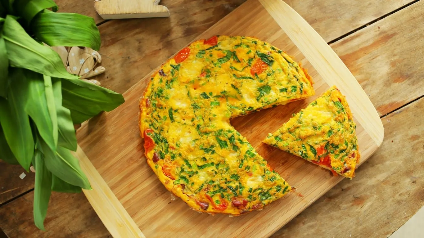 Az egészet egy villával lazán összekeverjük és a paradicsomos-sonkás keverékre öntjük, a tetejét pedig megszórjuk a megmaradt sajttal. Ha a tojás a serpenyő pereménél már kezd megszilárdulni, akkor mehet a 200 fokra előmelegített sütőbe, ahol kb. 10-12 perc alatt megsül.