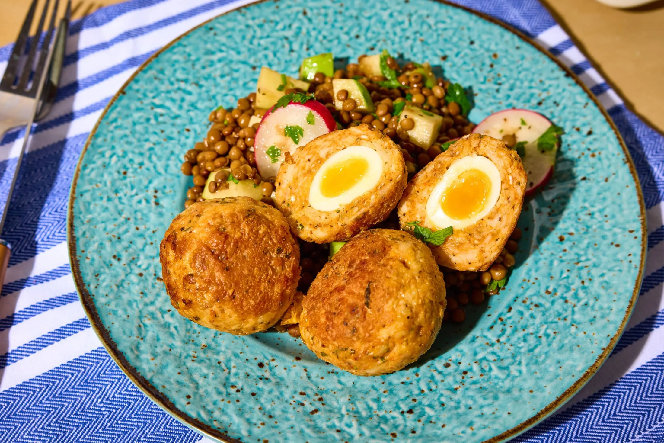 Hívhatnánk ezt az ételt a fitt skót tojásnak is – na jó, azért ez nem annyira igaz rá azonkívül, hogy egy tojással töltött húsról van szó. De persze ez semmit nem von le az értékéből.