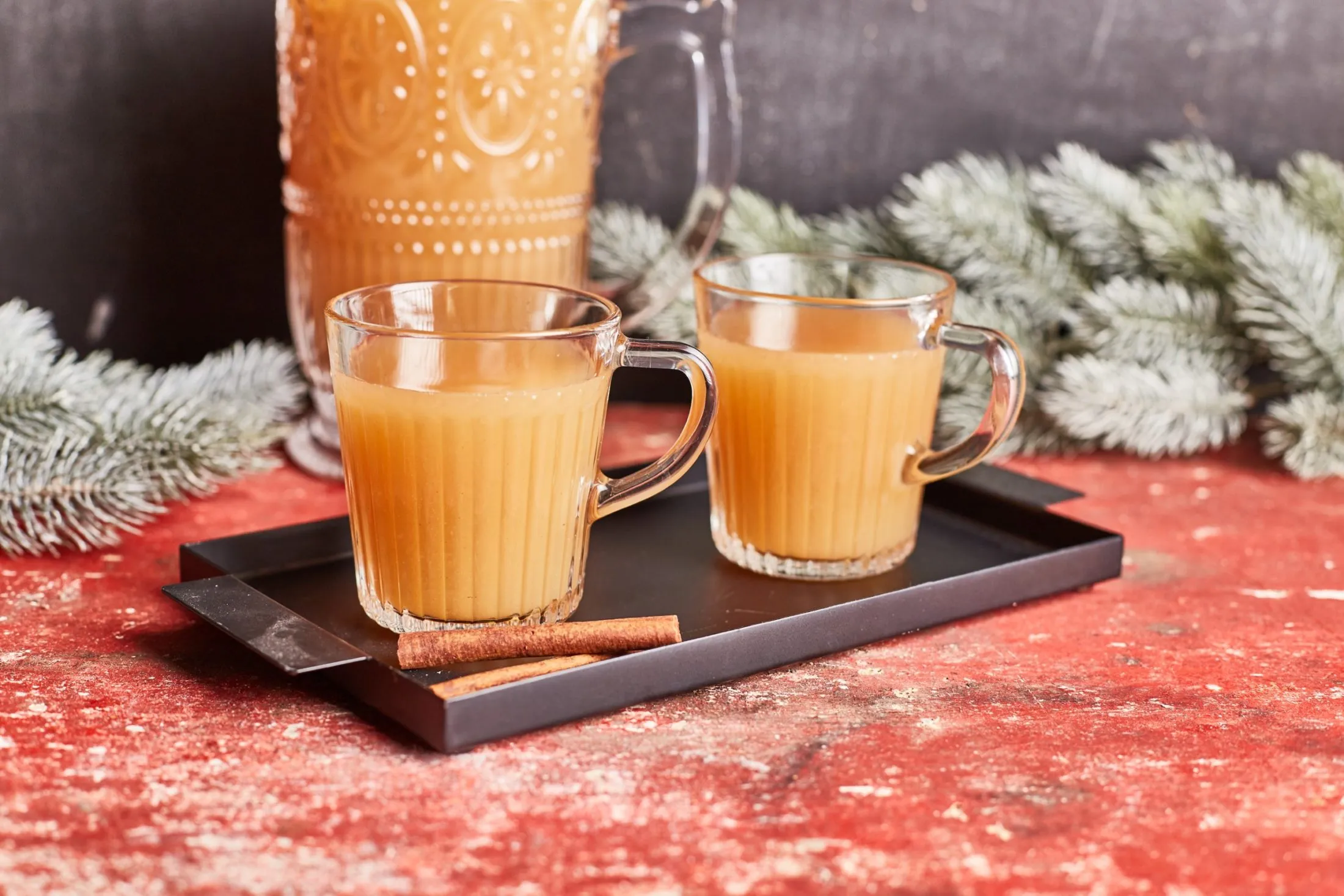 Az almákat, körtéket és a narancsokat alaposan megmossuk, majd negyedekre vágjuk, és egy nagy lábasba rakjuk őket. Beledobjuk a fűszereket, felöntjük a körte- és almalével, valamint a vízzel, és kb. 3 órát főzzük, közepes lángon.
