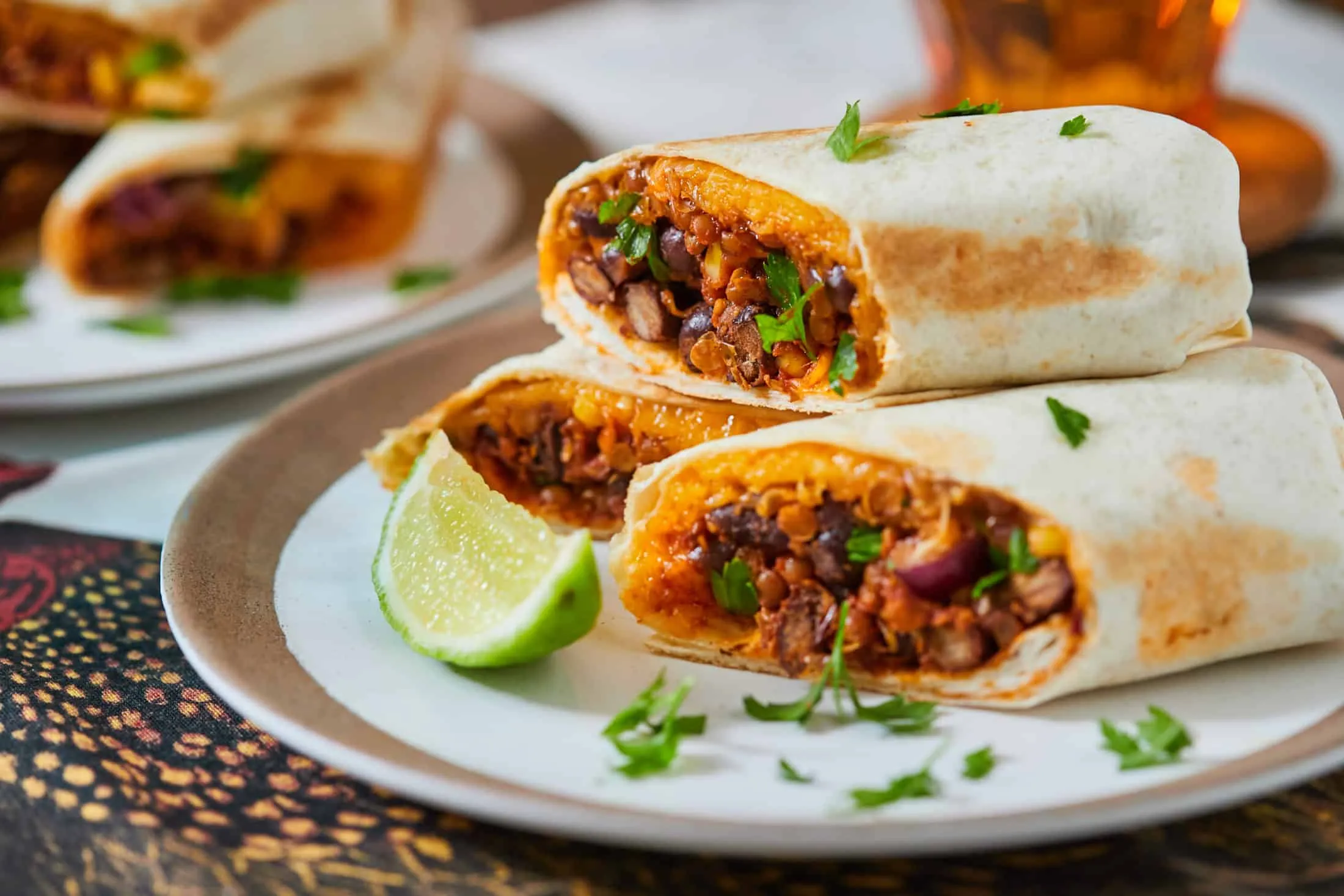 Elosztjuk a tortillák alsó felén a paradicsomos lencsét, jöhet rá pár szelet avokádó, apróra vágott lila hagyma, durvára vágott petrezselyem és egy adag reszelt sajt is. Alul, aztán kétoldalt behajtjuk a tortillalapot, majd feltekerjük, és egy száraz serpenyőben pár perc alatt minden oldalát átpirítjuk a burritóknak.