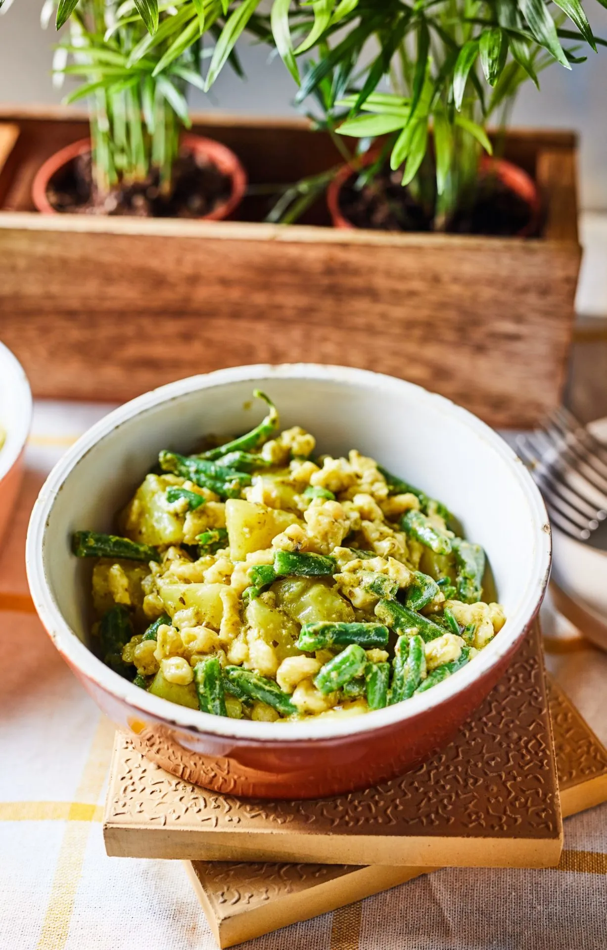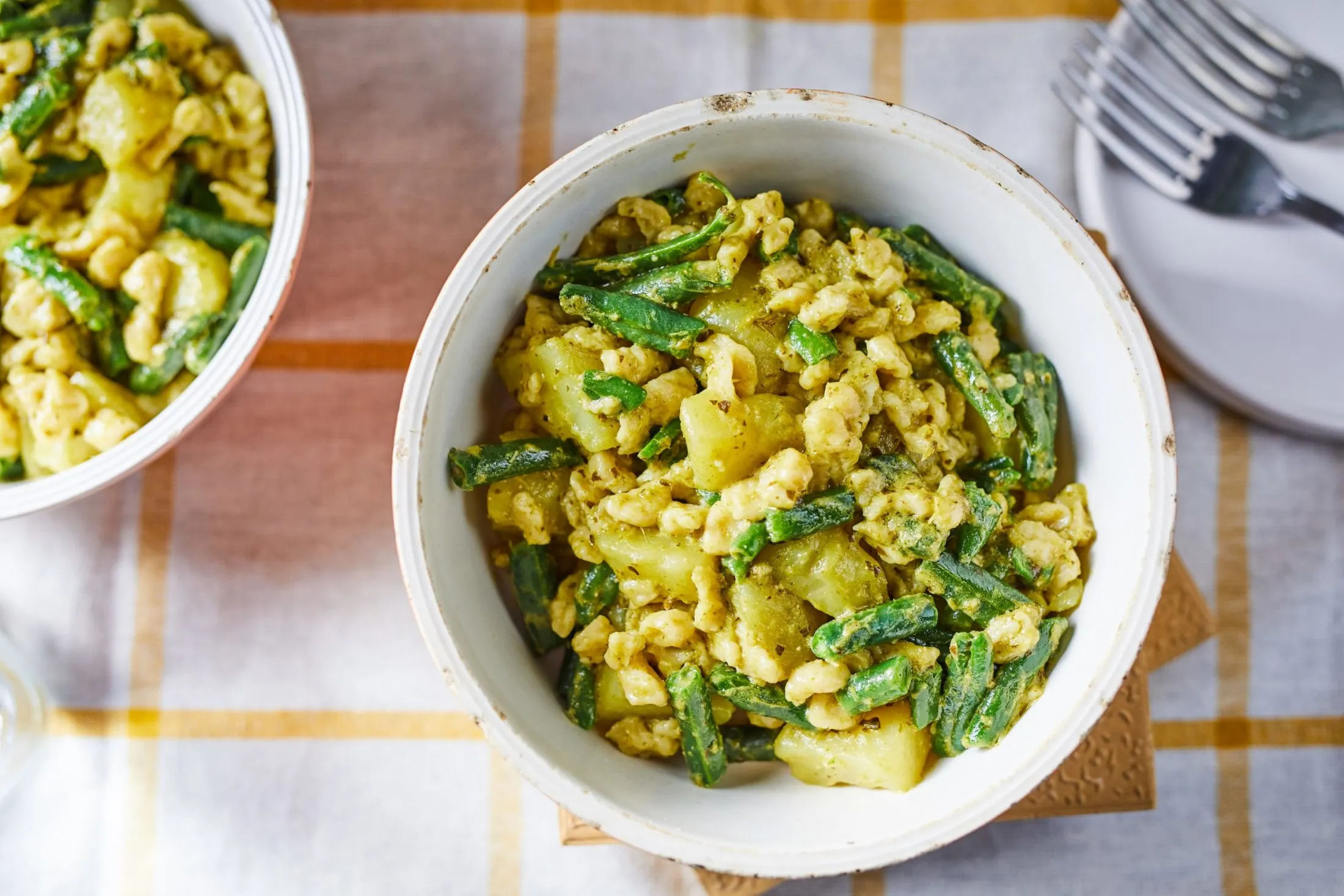Egy nagy lábasban felrakjuk főni a krumplit. Ha félig megpuhult, hozzáadjuk a fagyasztott babot, felforraljuk, majd további 6-7 percig főzzük, és leszűrjük. A nokedlit összeforgatjuk a zöldségekkel és a pesztóval, és kész is.