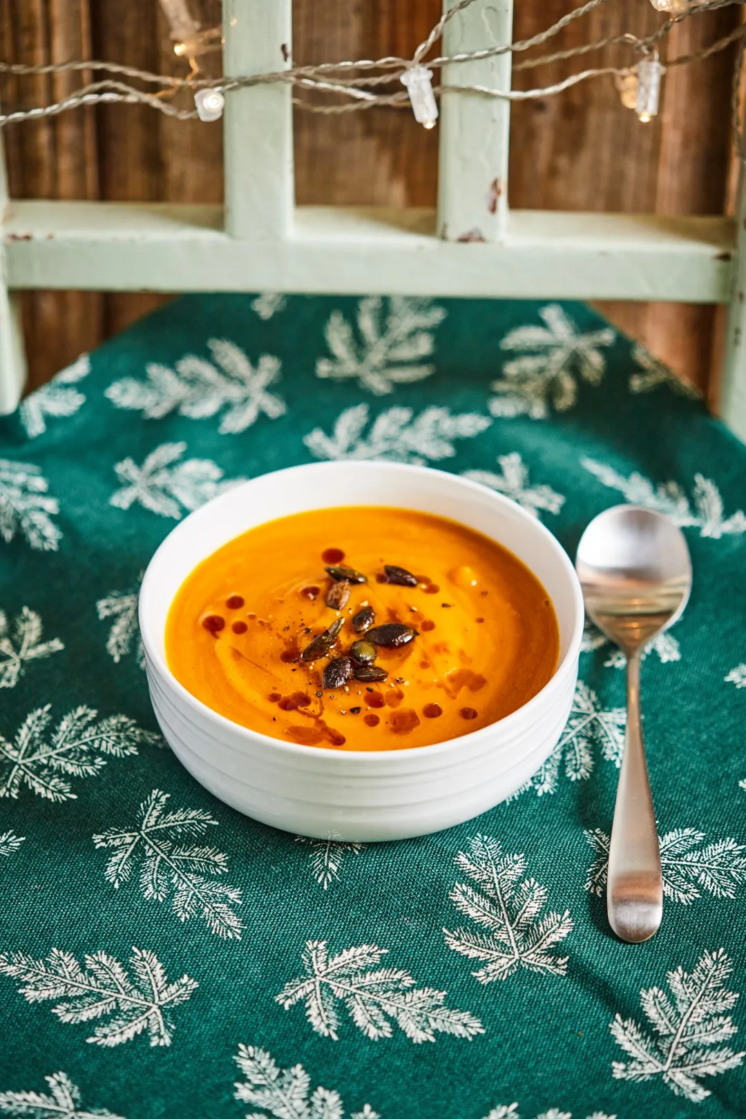 Gesztenyés-édesburgonyás sütőtökkrémleves