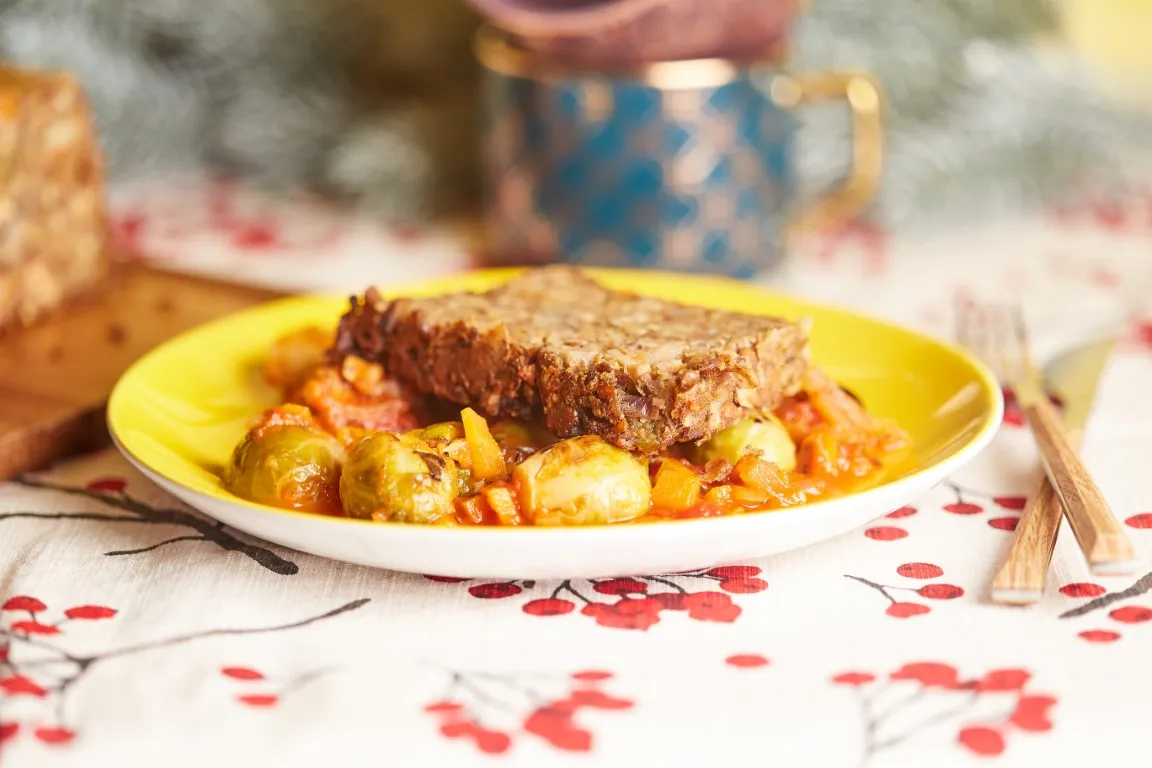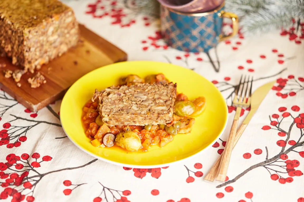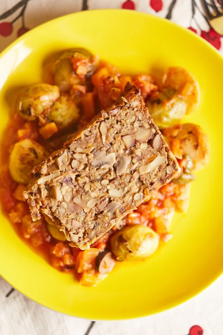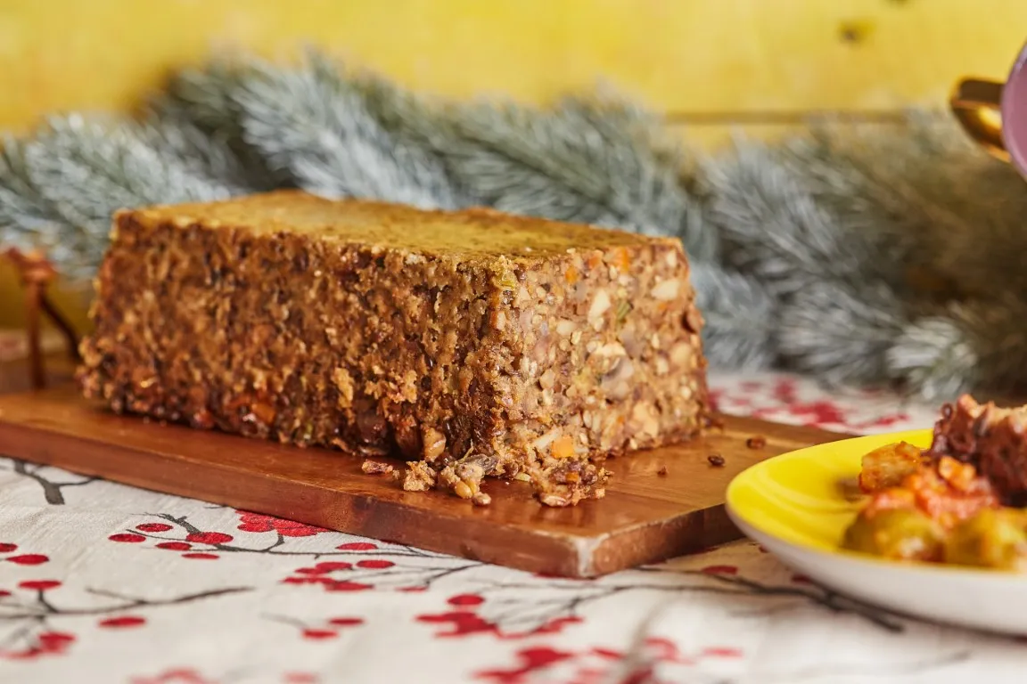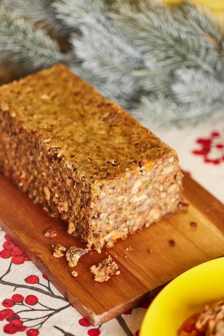 A loafhoz egy száraz serpenyőben alaposan lepirítjuk a gombát, a végén megszórjuk a kakukkfűvel és kiszedjük egy tálba. Ugyanabban a serpenyőben az olívaolajon 3-4 percig pirítjuk az apróra vágott hagymát, fokhagymát, zellert, répát. Rárakjuk a sűrített paradicsomot, Worcester szószt, sózzuk, borsozzuk és további 2 percig pirítjuk. Ezt a keveréket hozzáadjuk a gombához, az apróra vágott főtt gesztenyével együtt, végül a loafba keverjük a lecsepegtetett főtt lencsét is.