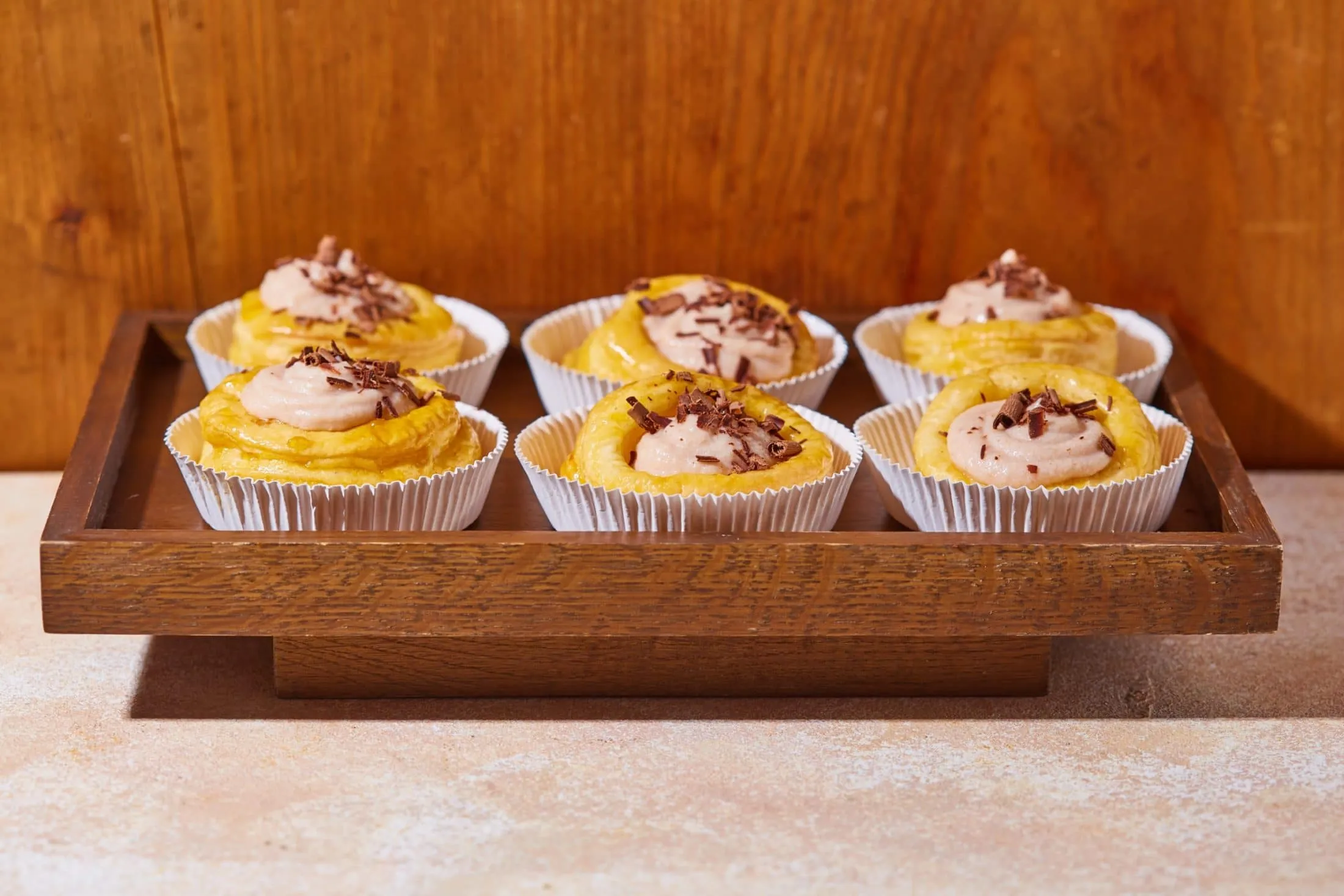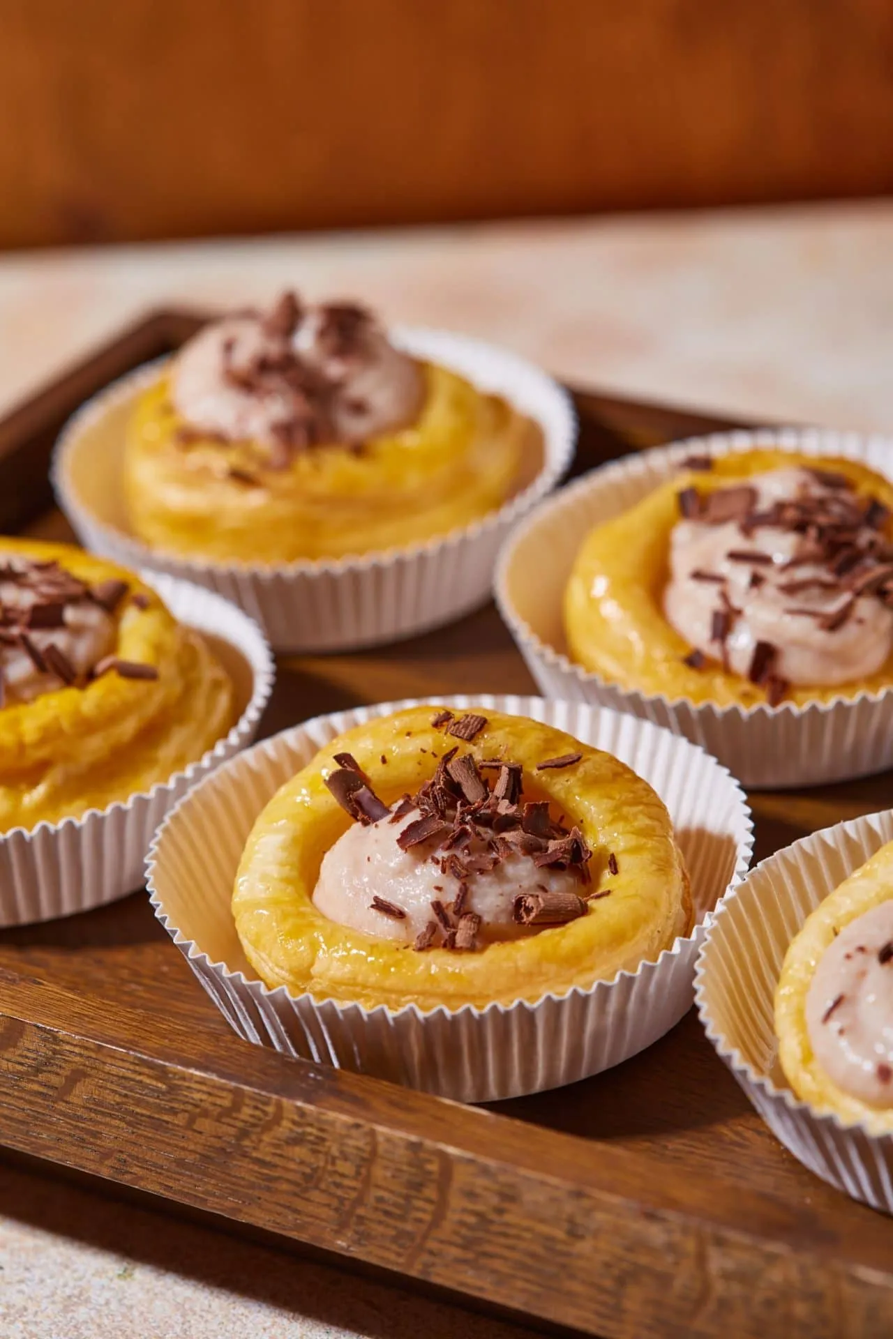 Ha megsültek a kosárkák, az ujjunkkal vagy egy kanál segítségével „betörjük” a belsejüket, ezzel helyet csinálva a krémnek, majd jó alaposan lekenjük őket a lekváros mázzal. Mindenhol kapjanak bőven a mázból, mert szép fényesek lesznek tőle, nem mellesleg pompás ízt kölcsönöz a tésztának.