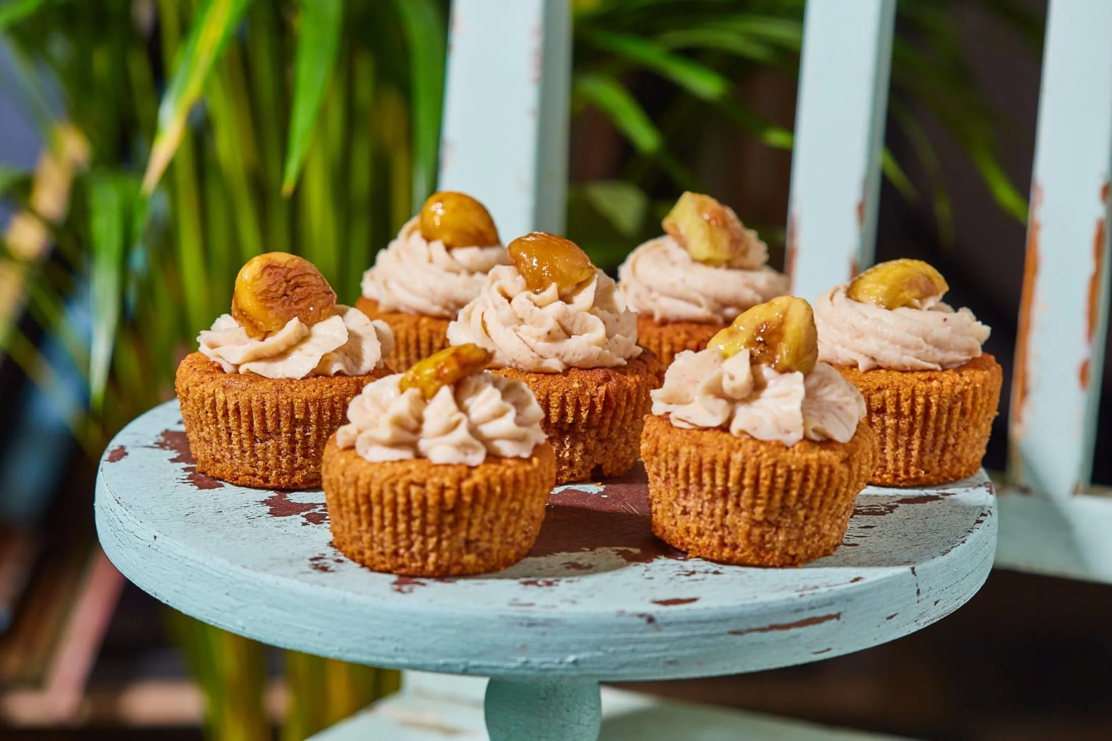 A krémhez a mascarponét kihabosítjuk a cukorral, majd összedolgozzuk a gesztenyemasszával, majd rákenjük a muffinokra.