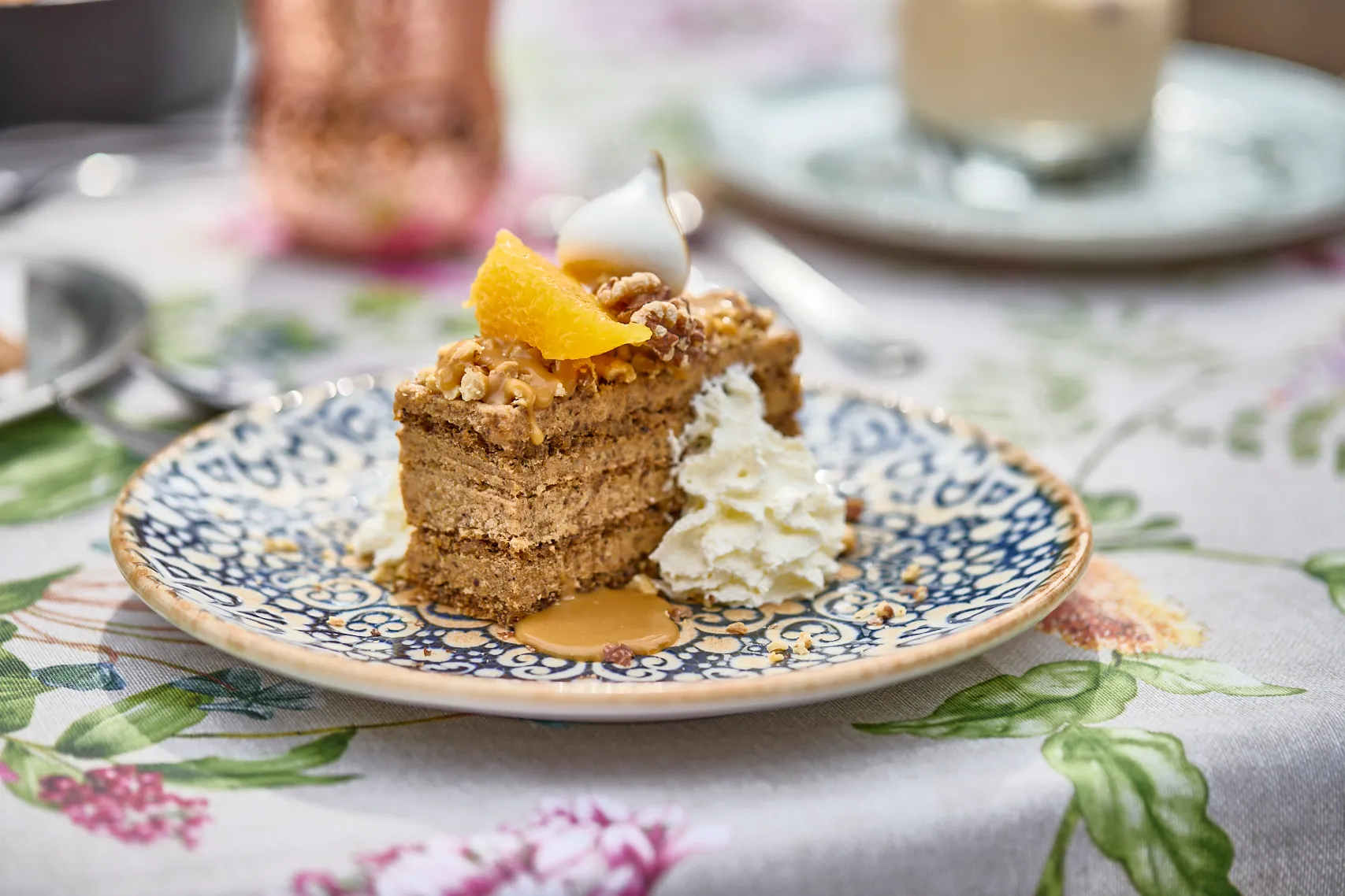 A krémhez a sűrített tejet és 30 ml tejszínt közepes lángon elkezdjük karamellizálni. Gyakran kevergetve addig főzzük, amíg szép arany színt kap, de vigyázni kell, nehogy leégjen. A tojássárgájákat kihabosítjuk, hozzáadjuk a gesztenyét és a karamellizált sűrített tejet, és jól elkeverjük. 200 ml tejszínt kemény habbá verünk, és hozzáforgatjuk a krémhez.