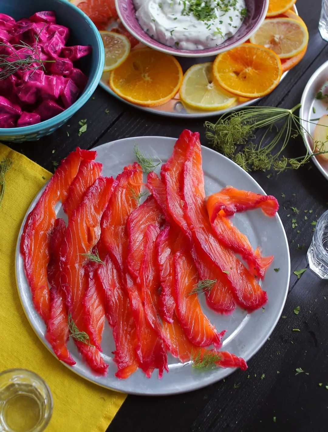 Nem hinném, hogy a friss lazacot bármilyen más elkészítési móddal látványosabbá és finomabbá lehetne varázsolni, mint ezzel a recepttel. Mivel két napig hűtőben kell érlelni, ne a vendégek érkezése előtt 1 órával találjátok ki, hogy ez még lemaradt. Leginkább hideg előételnek tudom elképzelni, de elegáns nyitott szendvicseket is csinálhattok belőle!