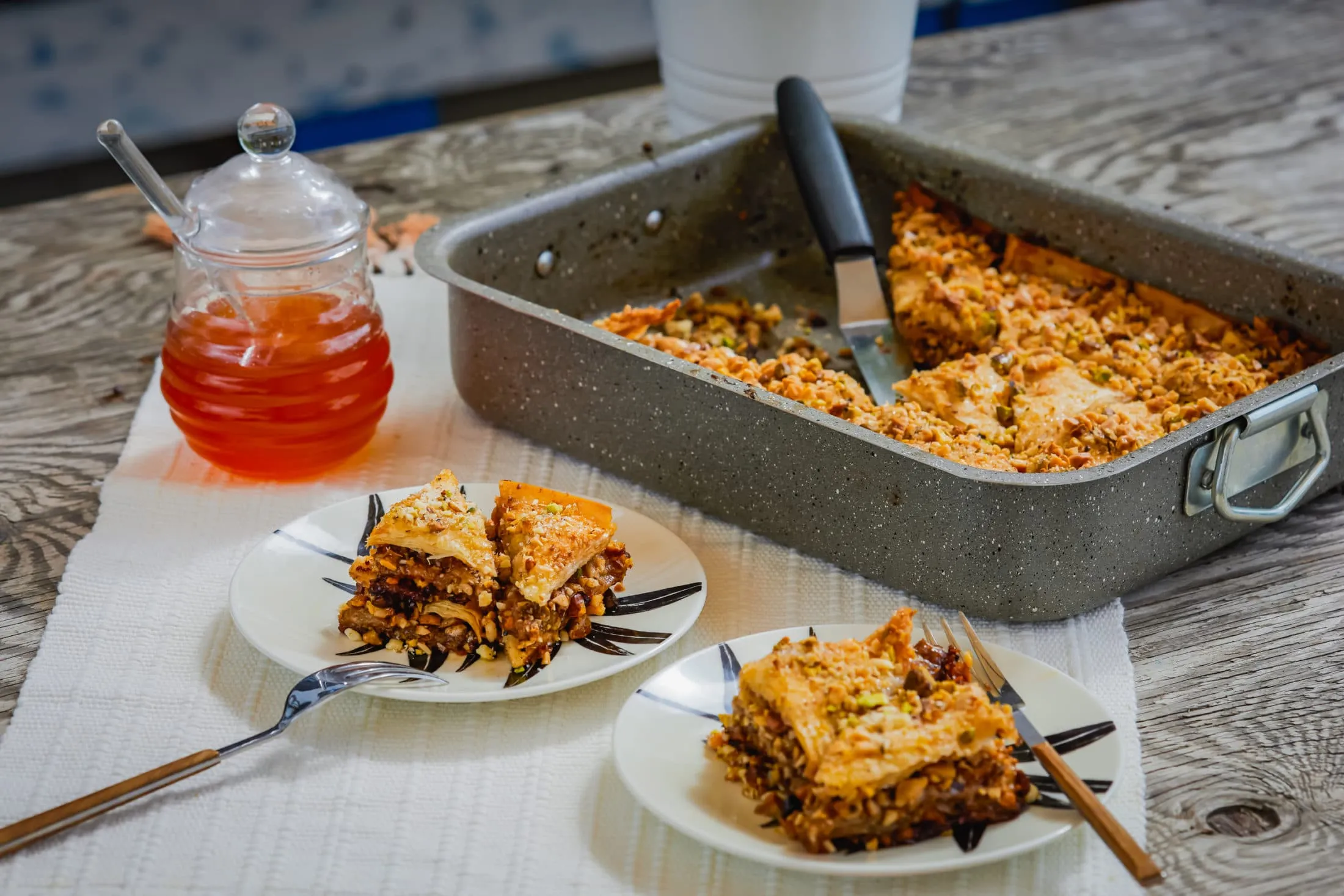 A baklava kifejezetten az a süti, ami picit macerás, de nem lehet elrontani, hiszen csak rétegezni kell pár dolgot egy tepsibe, és végül megsütni. Simán bedobhatjátok 175-180 fokos sütőbe is, de ha grillen készítitek, akkor kap egy kis plusz füstös ízt. Arra figyeljetek ilyenkor, hogy ha lehet, a grillre tegyetek egy pizzakövet, hogy ne égjen meg az alja.