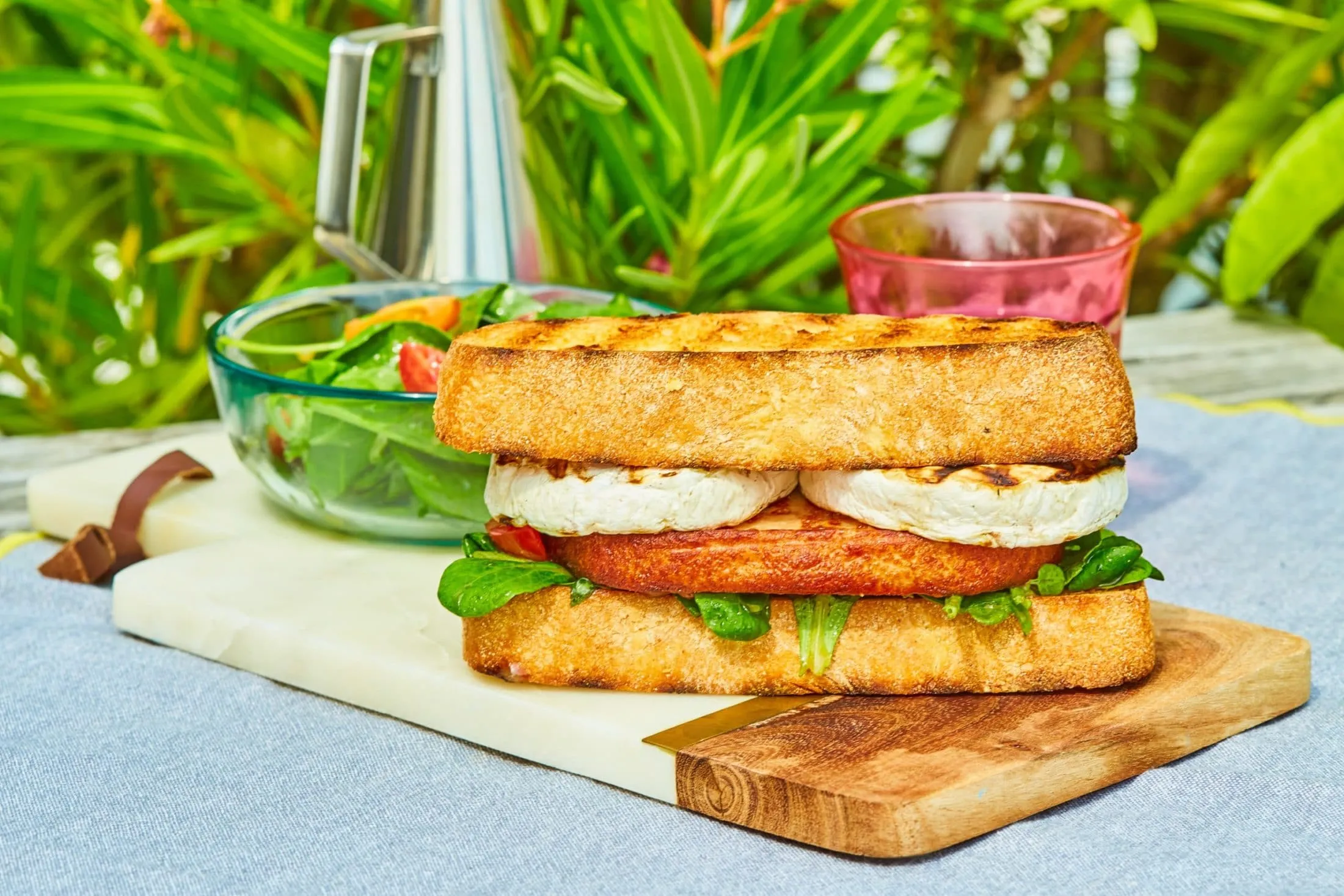Összeállítjuk a szendvicset: az egyik szelet kenyérre mehet bőségesen saláta, erre ráfektetjük a sonkát, majd a sajtokat, és lefedjük a másik szelet ropogósra sütött kenyérrel. A szendvicset a megmaradt salátával tálaljuk.