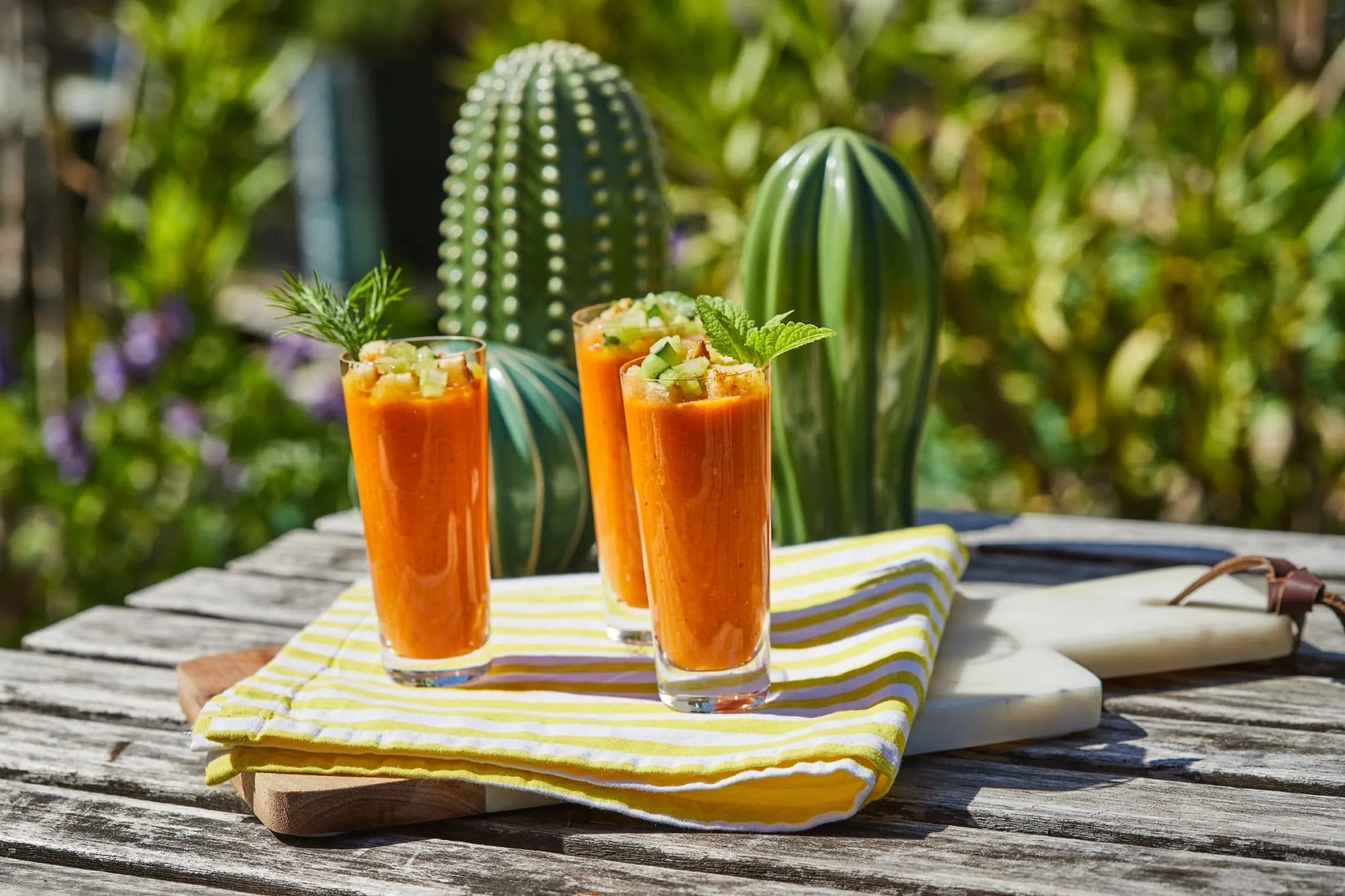 Megkóstoljuk, ha kell, ízlés szerint az összes fűszerből, szószból és ecetből rakunk még bele, és végül belezúzzuk az uborkát is, hogy egy kis frissítő ízt adjunk neki. A gazpachót legalább 2 órára hűtőbe tesszük, hogy igazán friss és üdítő legyen.