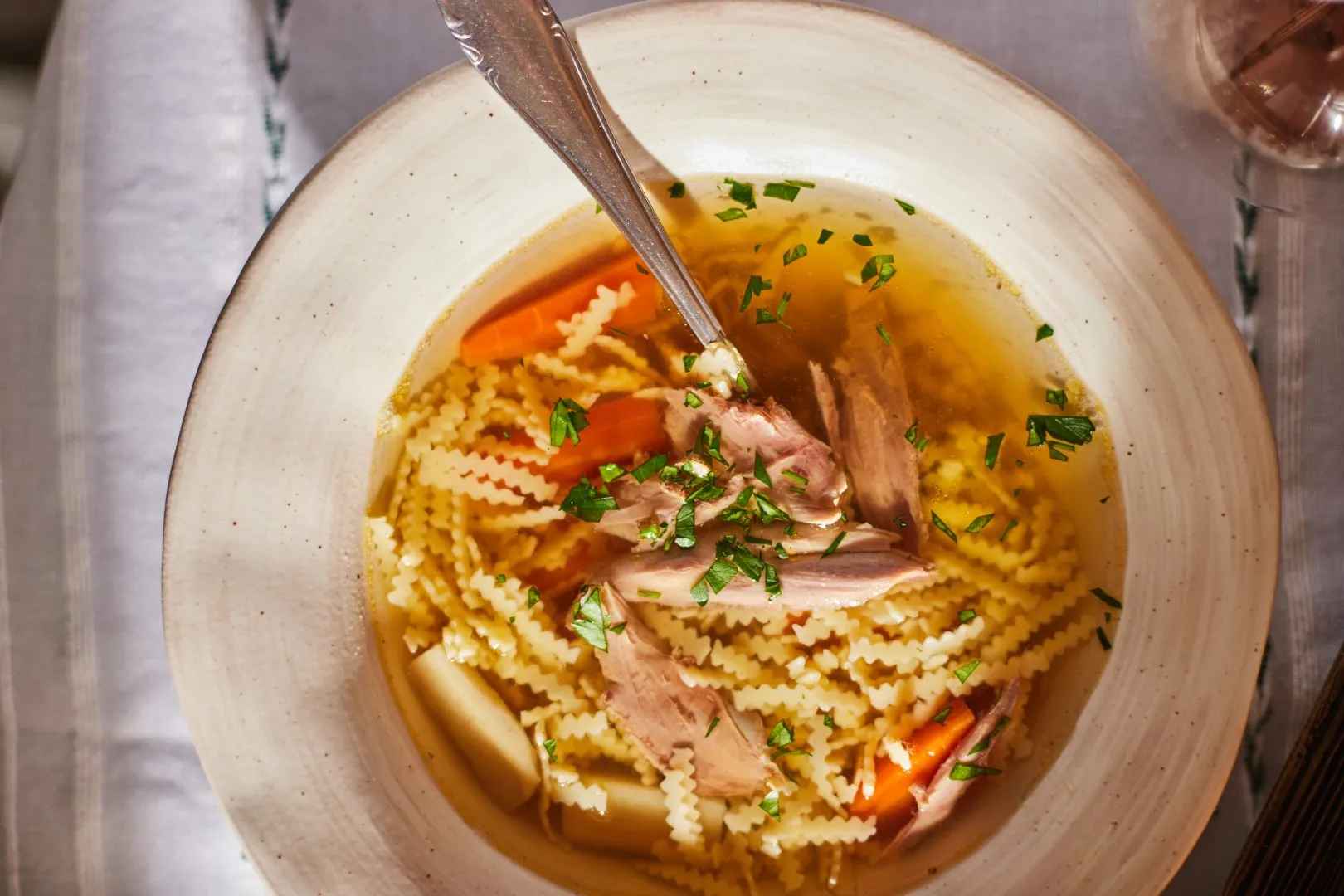 Majd beletesszük az összes leveszöldséget, és ezekkel is főzzük gyöngyözve 1 órán át, úgy hogy közben soha, nem hagyjuk, hogy felforrjon. Ezalatt a zöldségek megpuhulnak, kiszedjük, majd ellenőrizzük hogy a hús is megpuhult e. Ha elkészült, hagyjuk kicsit ülepedni a levest. Főzzetek hozzá valami jó házias leves tésztát vagy készítsetek hozzá a daragaluskát, aminek a receptjét itt találjátok.