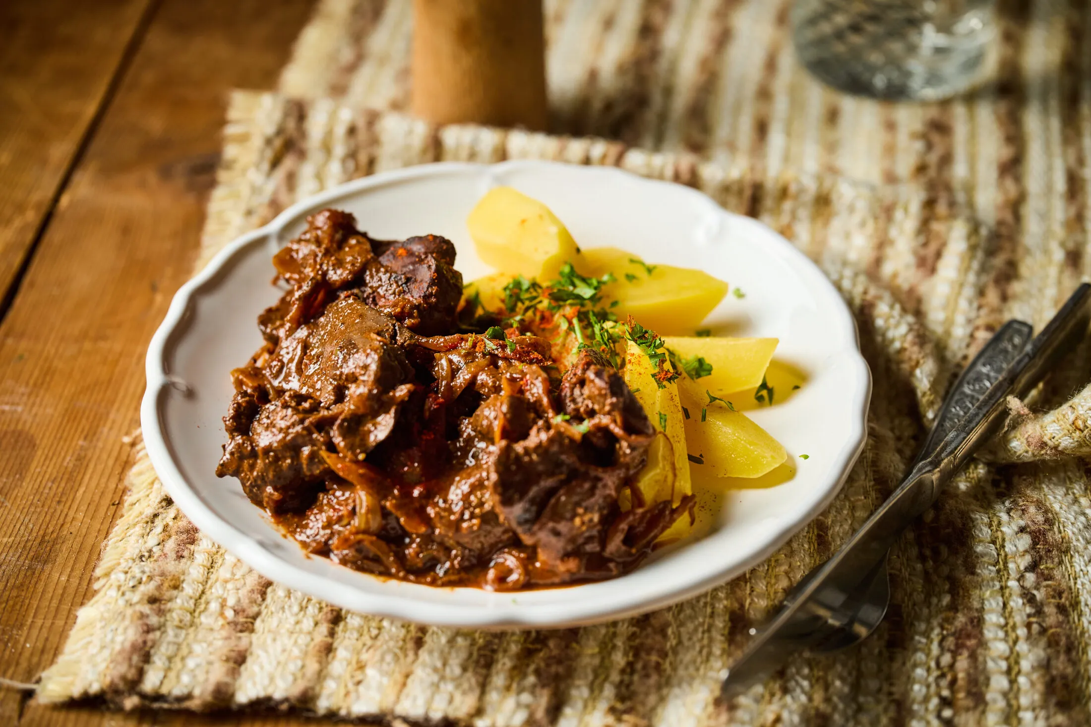 A krumplit cikkekre vágjuk és sós, bő hideg vízben feltesszük főni. Mérettől függően, forrástól számítva kb. 15 perc alatt készre főzzük, majd leszűrjük és a májjal tálaljuk. A végén az ételt megszórjuk frissen aprított petrezselyemmel és fűszerpaprikával.