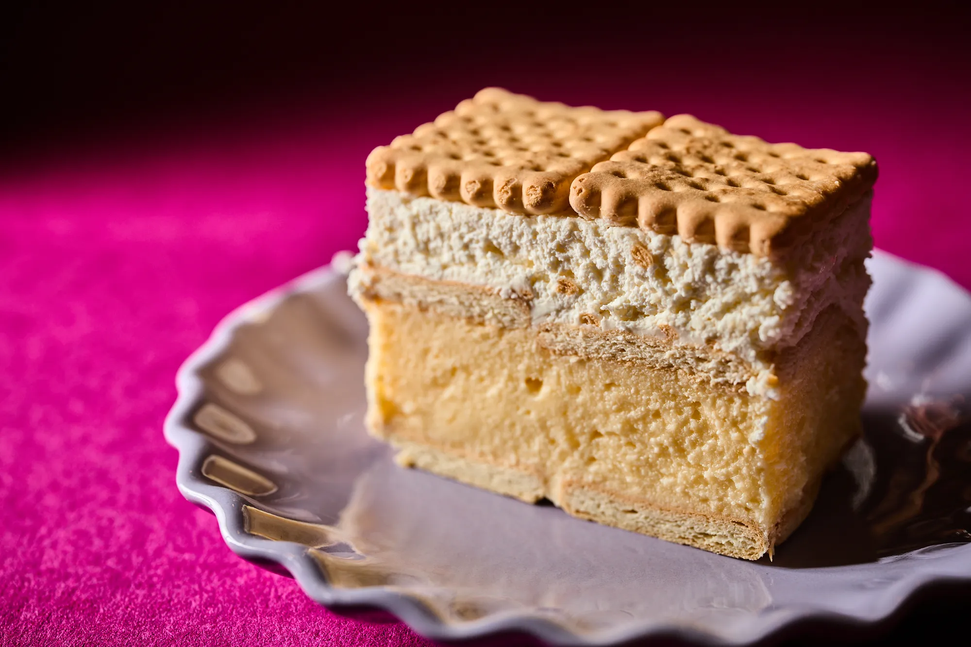 Ez a sütemény igazi klasszikus, amikor sütés nélkül szeretnénk valami krémes, mégis egyszerű desszertet készíteni. A háztartási keksz rétegei között selymes vaníliás krém és könnyű tejszínhab váltakozik, a tetején pedig újra egy réteg keksz vár. Hűtve a legjobb, amikor az ízek összeérnek, a keksz pedig kissé megpuhul.