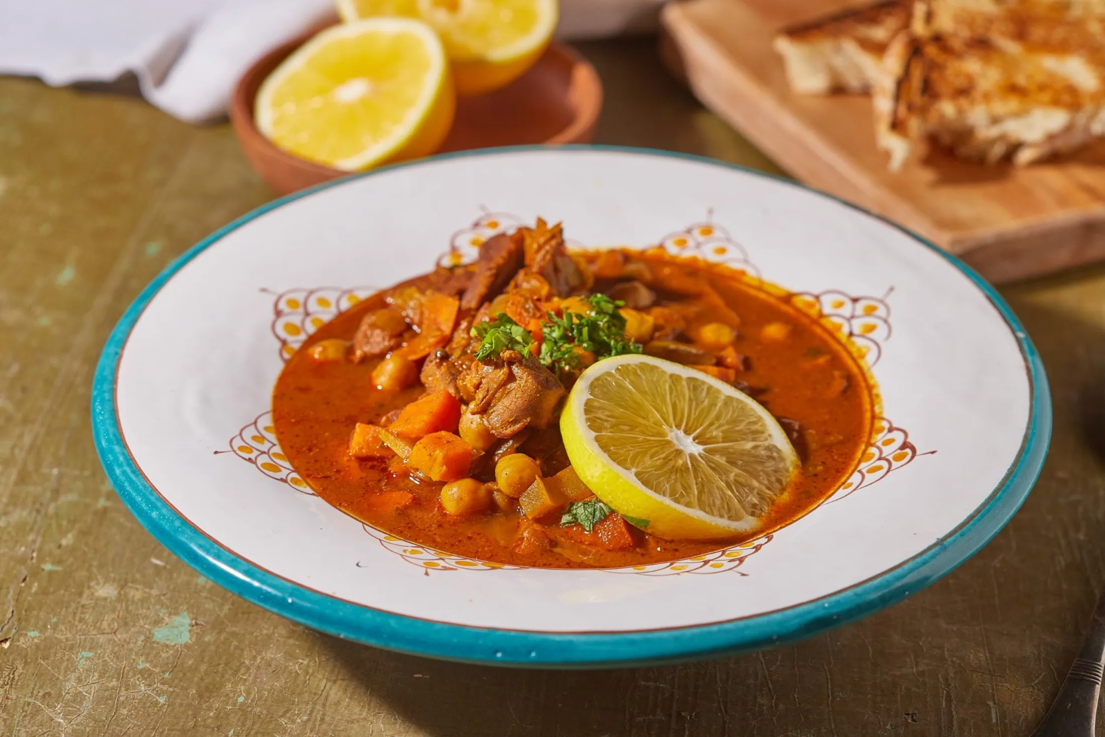 Miután megpuhultak a zöldségek, beletesszük a csicseriborsót, valamint az aprított petrezselymet és koriandert, majd összeforraljuk. Végül citromlével ízesítjük, tányérba szedjük, megszórjuk egy kevés apróra vágott korianderrel vagy petrezselyemmel, és citromkarikával tálaljuk.