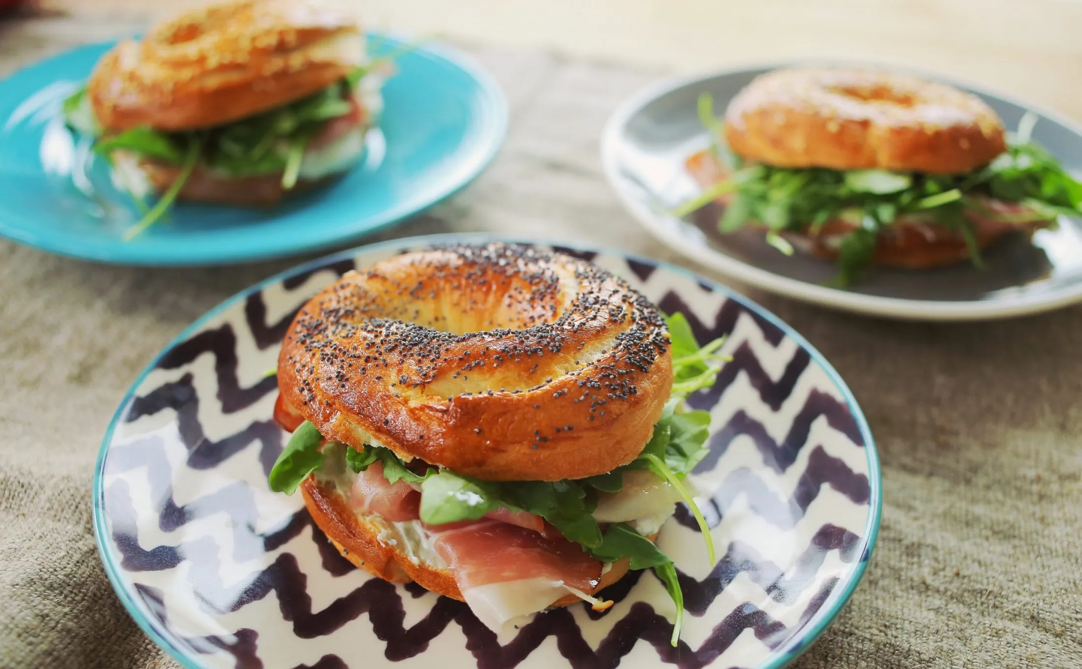 Nincs is jobb egy saját kezűleg, házilag összedobott bagelnél. Ebbe a Zé-féle verzióba jelen esetben ciderben posírozott körte, kéksajtos krémsajt és erdei sonka került. Ugye, milyen menőn hangzik? :)