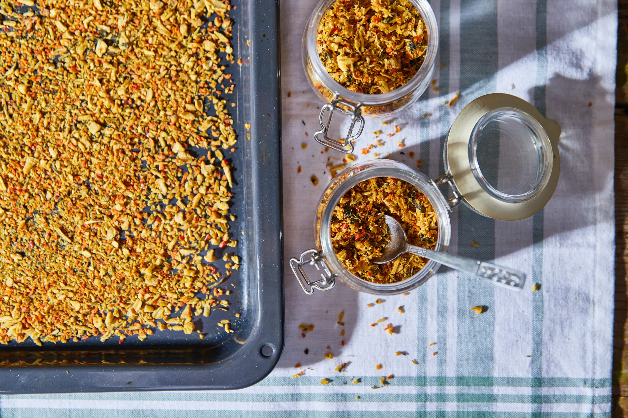 Minden zöldséget és zöldfűszert egy aprítóban lezúzunk, és összeforgatjuk a sóval, valamint a szárított lestyánnal. Hagyjuk állni 30 percet, majd kinyomkodjuk, és egyenletesen szétoszlatjuk 2 tepsin. 90 fokra előmelegített sütőbe tesszük 5 órára száradni. Közben legalább kétszer átkeverjük. Ha letelt az idő, kész is, ha pedig még finomabbra szeretitek, akkor tegyétek be egy aprítóba, és zúzzátok még apróbbra. Üvegben sokáig eláll.