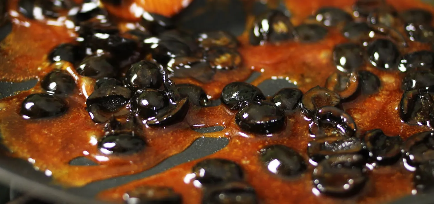 Egy serpenyőbe cukrot szórunk, és közepes lángon elkezdjük karamellizálni. Amikor már olvadt, beledobjuk a félbevágott olívabogyókat, összerázzuk, majd egy kevés vajjal selymesítjük. Újból összeforgatjuk, ha kívánja, egy kis sót is kaphat, majd félretesszük hűlni.