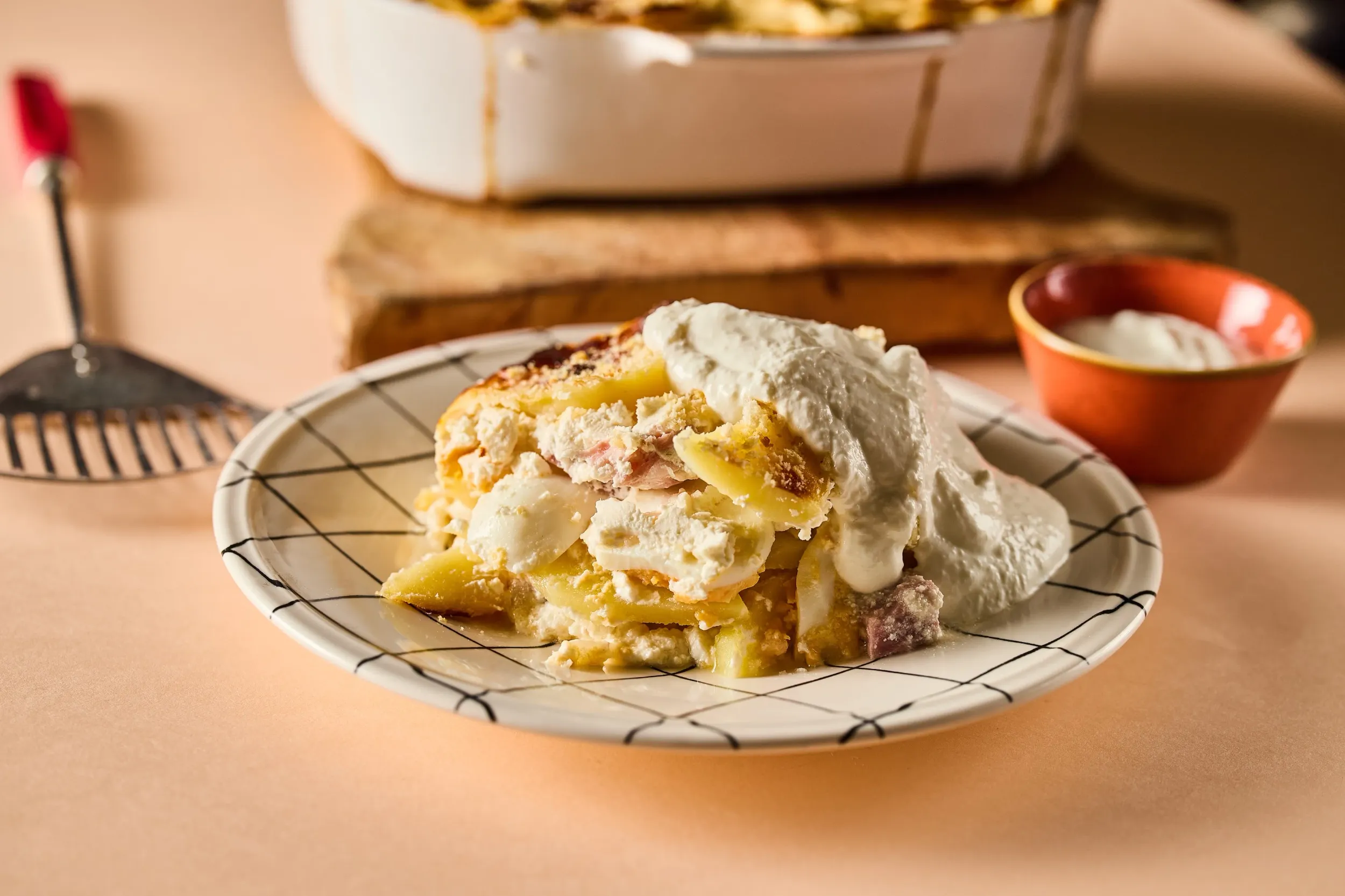 A húsvéti asztal megkerülhetetlen szereplői a füstölt sonka, a tojás és a torma, de miért ne hozhatnánk ki belőlük valami újat a hagyományos hidegtálon túl? Ez a recept a klasszikus rakott krumplit emeli ünnepi szintre: a krémes tejfölt pikáns tormával bolondítjuk meg, a szaftos sonkakockák pedig gondoskodnak arról, hogy ez a fogás legyen az ünnepi ebéd fénypontja. Egyszerűen összeállítható, laktató és garantáltan új értelmet ad a húsvéti maradékoknak is.