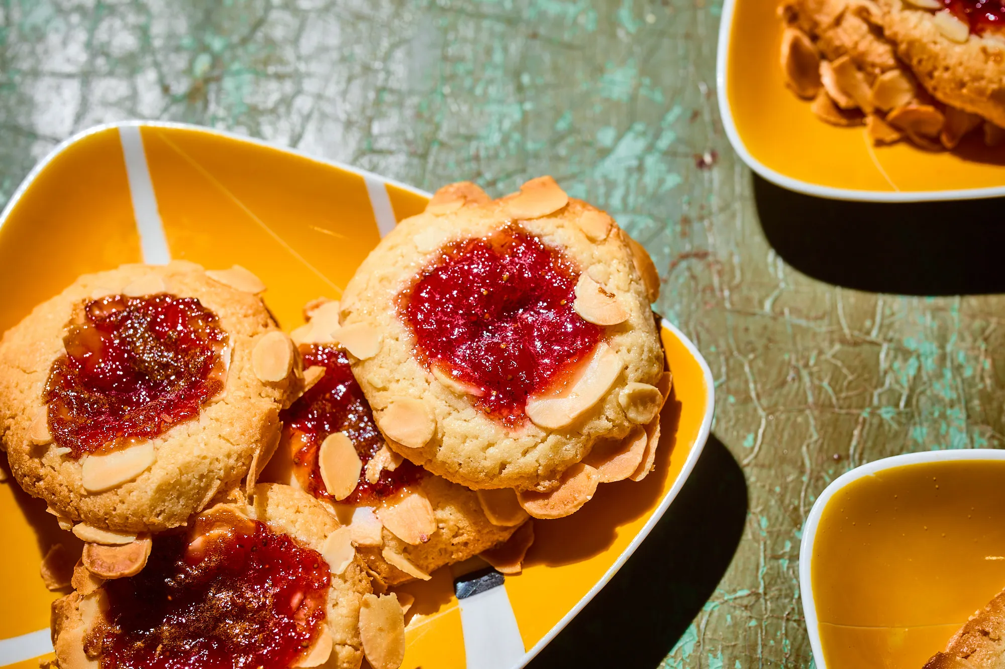 Ez az aprósütemény pont azt a nosztalgikus élményt hozza el, amit a nagymama konyhájában éreztünk, de a mandulás réteg ad neki egy elegáns, modern csavart. A lekvár ízét bátran variálhatod a szezontól függően, a fanyar baracktól a mélyvörös csipkebogyóig minden remekül áll neki. Tálaláskor hagyd teljesen kihűlni a rácson, hogy a tészta szerkezete megszilárduljon, és a mandula is ropogós maradjon.