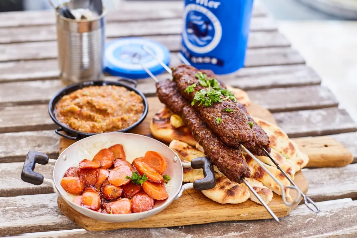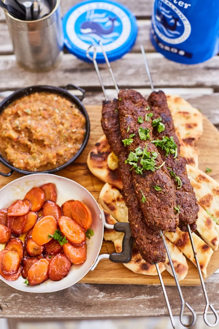 Vajat olvasztunk egy serpenyőben, majd rádobjuk a 3 mm vastag csíkokra ferdén felszeletelt répát, fedő alatt pároljuk kb. 10 percig. Sózzuk, közben egy kis sört is öntünk alá.. Végül megforgatjuk mézben is.A salsához: