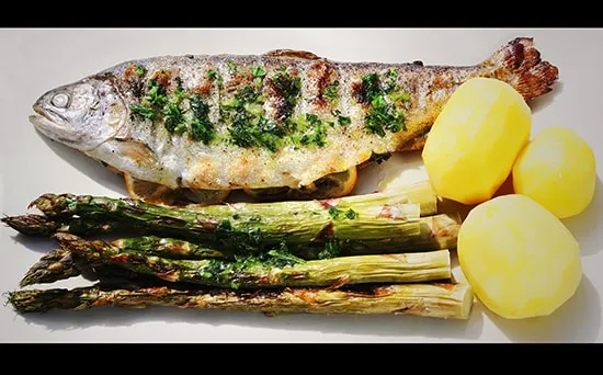 A friss pisztráng mellé most egy üdítően friss kísérőt, citromos vízben főzött zöldspárgát választottam, ami a parázs felett extrában kapott füstös ízzel eszméletlen jó kiegészítőnek bizonyult. Parázs felett sült pisztráng füstös zöldspárgával, újkrumplival és petrezselymes fűszervajjal.