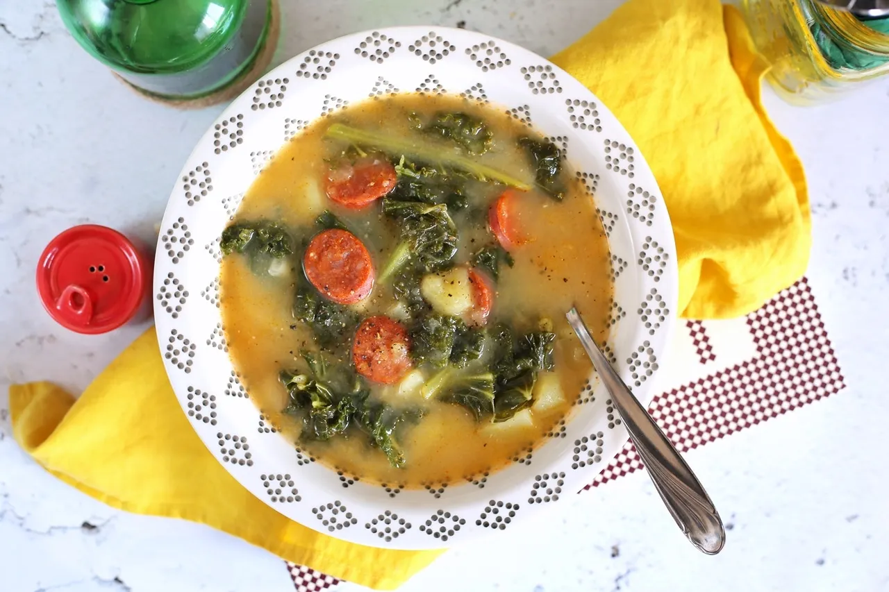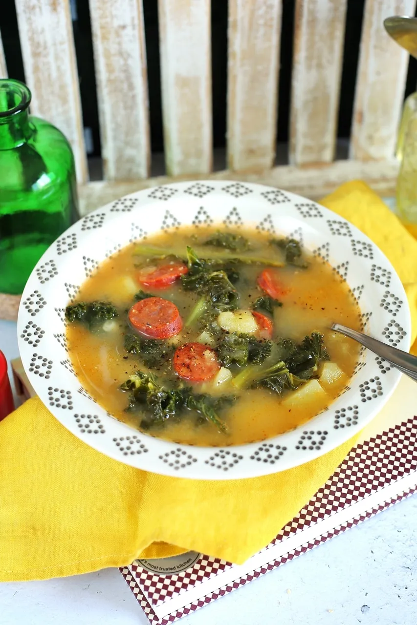 A frankfurti leves portugál testvére, ahogy ők nevezik a zöld húsleves - chorizós, krumplis, fodros keles laktató csoda.