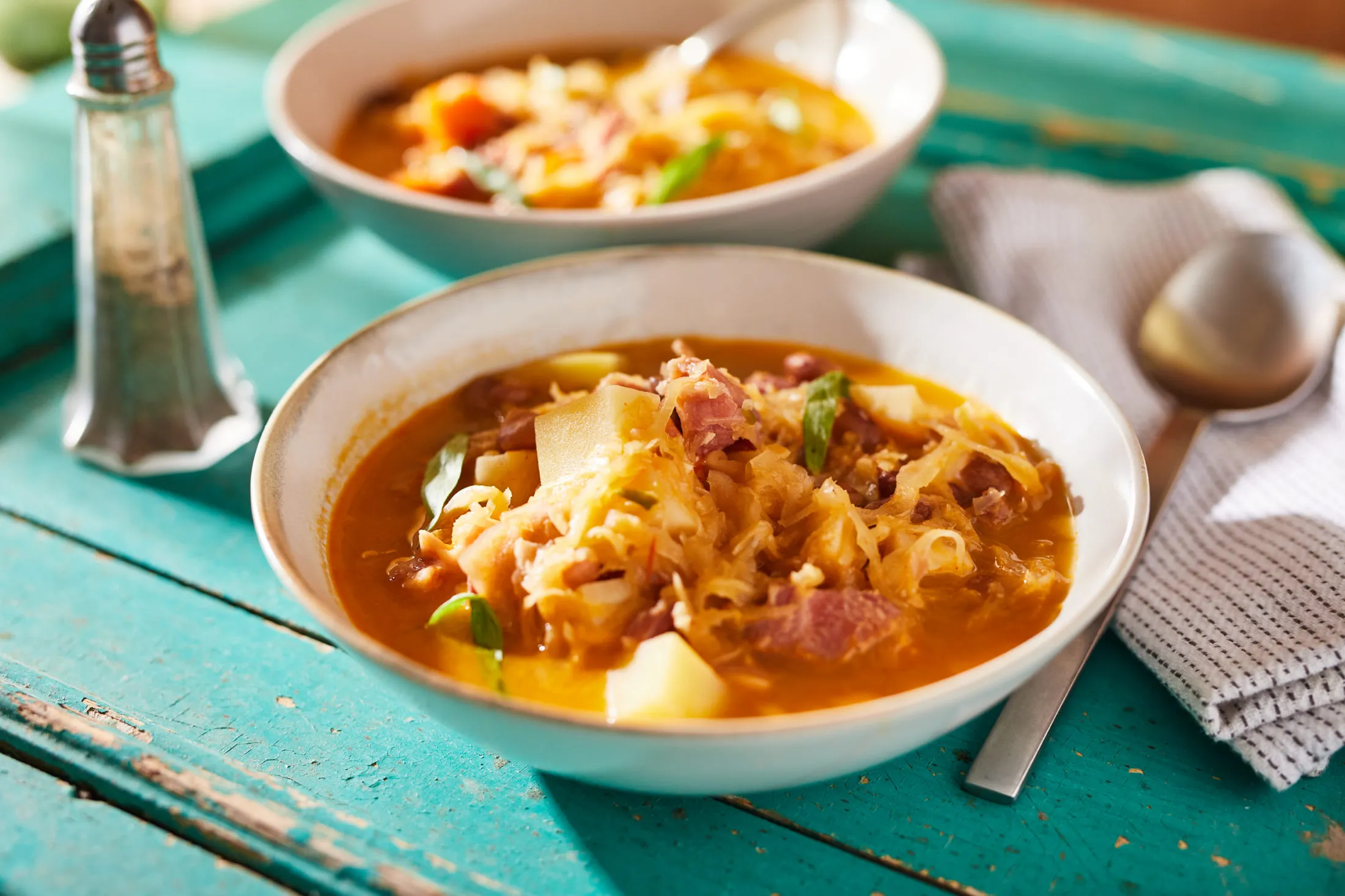 Beledobjuk a savanyú káposztát, a felkockázott répákat és burgonyát, valamint a babérlevelet, majd jöhet a főtt csülök, lével együtt. Addig rotyogtatjuk, amíg a zöldség teljesen puha lesz. A vége előtt 5 perccel hozzátesszük a babot, lével együtt. Ízlés szerint sózzuk, borsozzuk, megszórjuk friss aprított tárkonnyal, és tálaljuk.